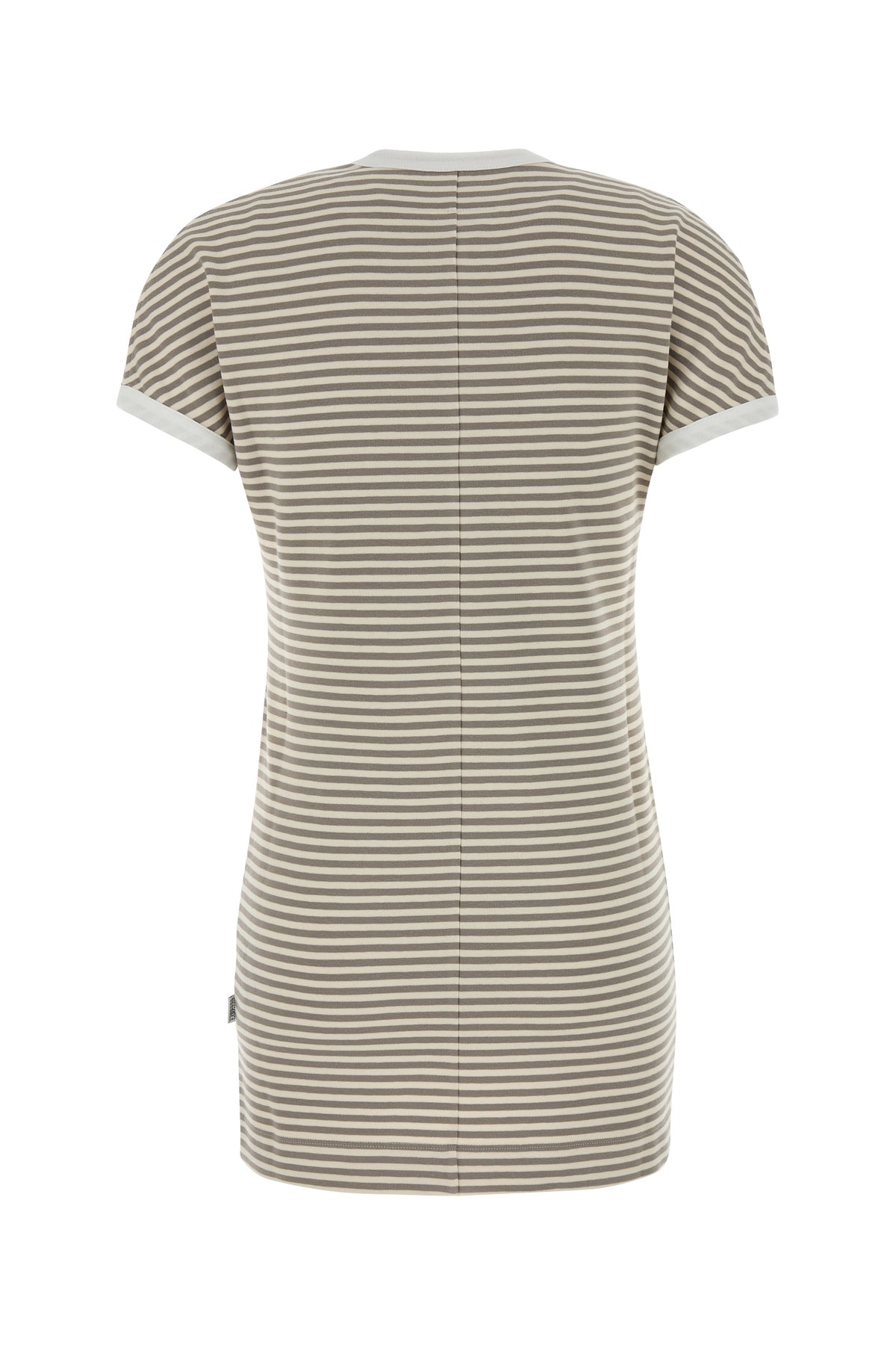 Fitted mini dress realized in stretch cotton characterized by striped embroidery on the entire surface.