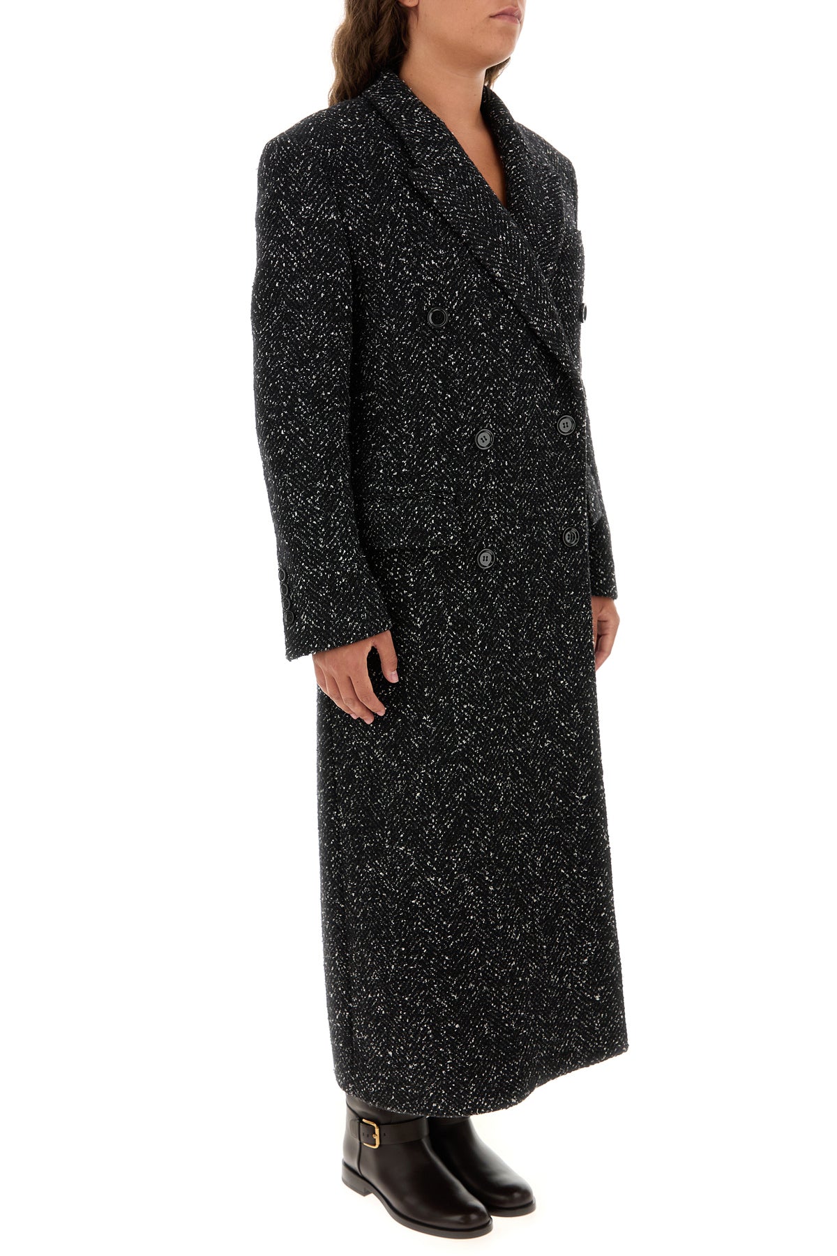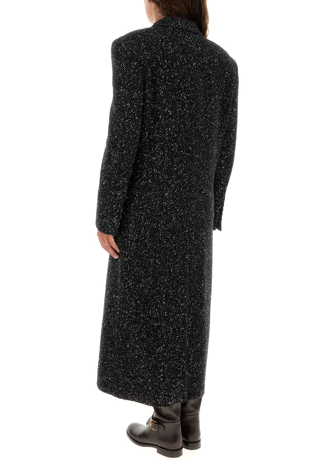 Long-cut coat realized in virgin wool blend characterized by peculiar embroidery on the entire surface.