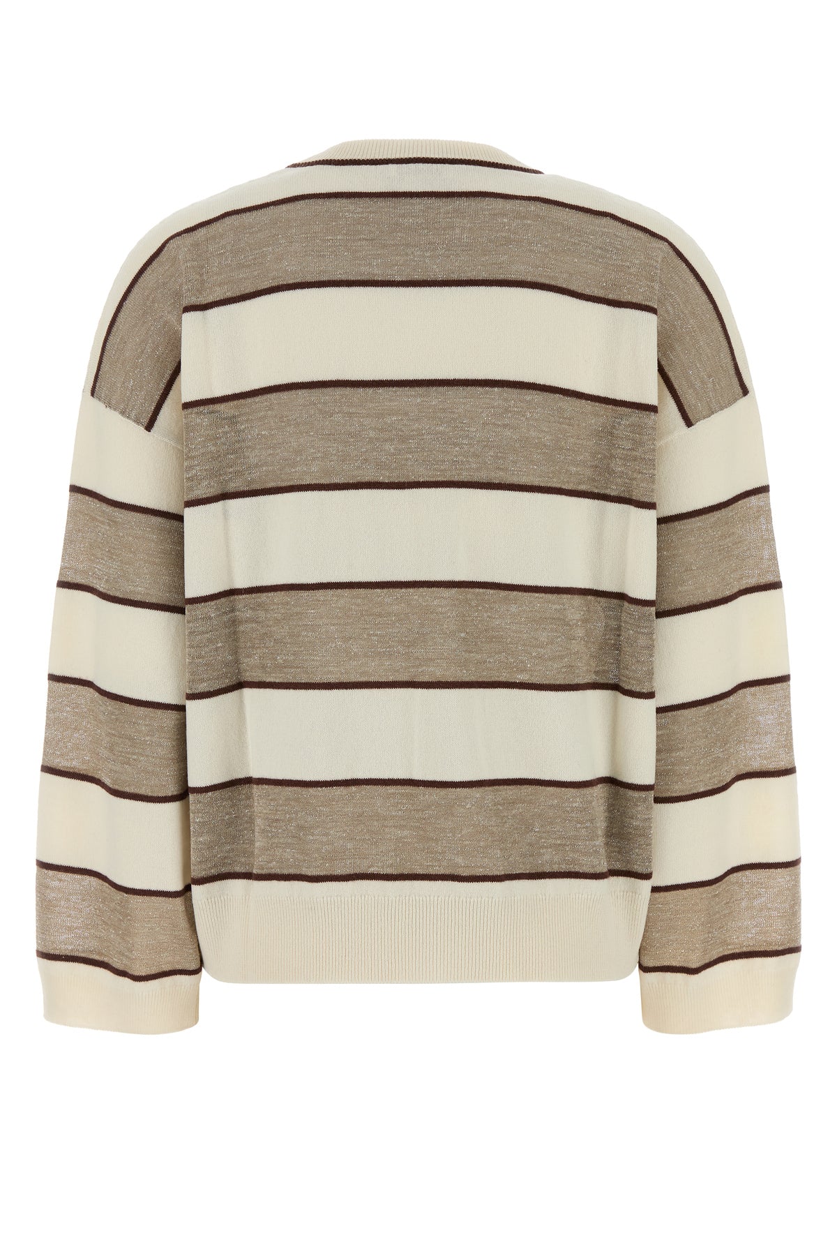 Oversize sweater realized in virgin wool with lurex threads characterized by striped embroidery on the entire surface.