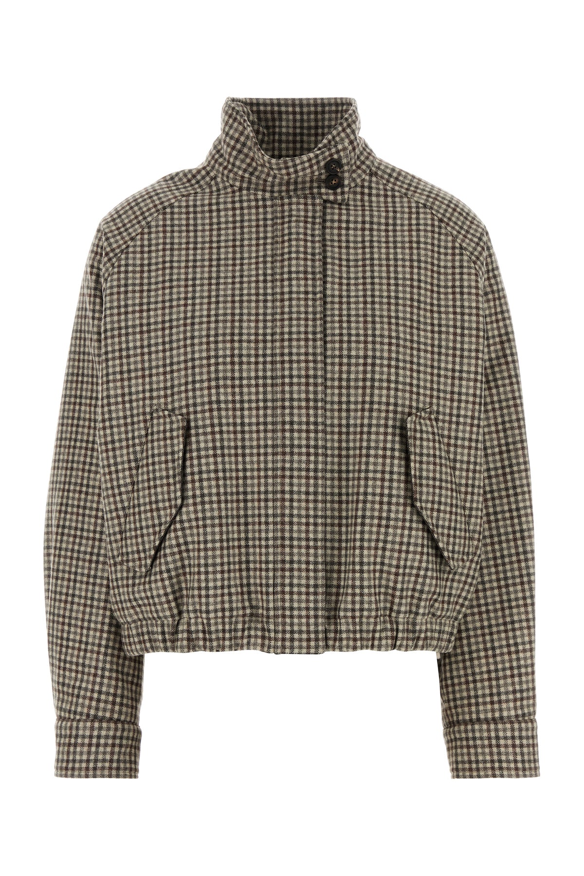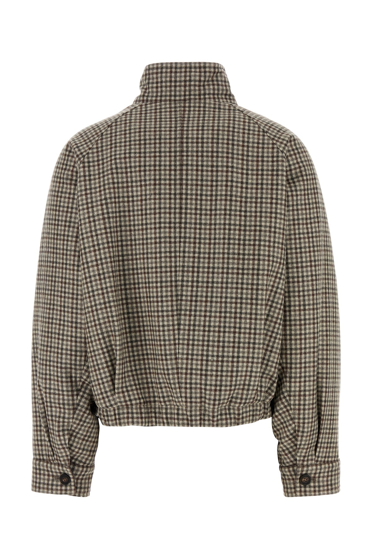 Slightly padded jacket realized in pure virgin wool characterized by checked embroidery on the entire surface.