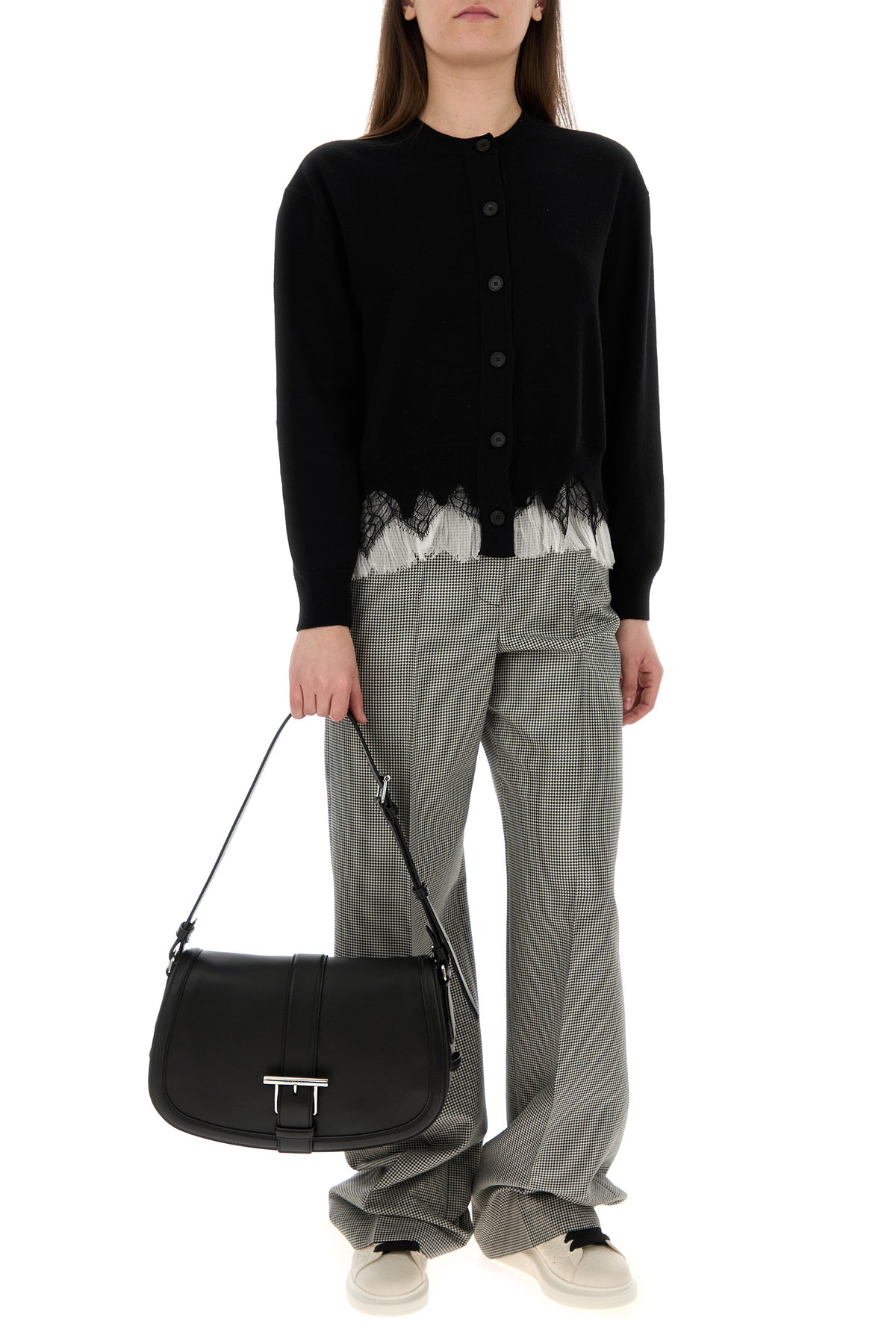 Wide-leg pant realized in pure wool characterized by houndstooth motif embroidery on the entire surface.