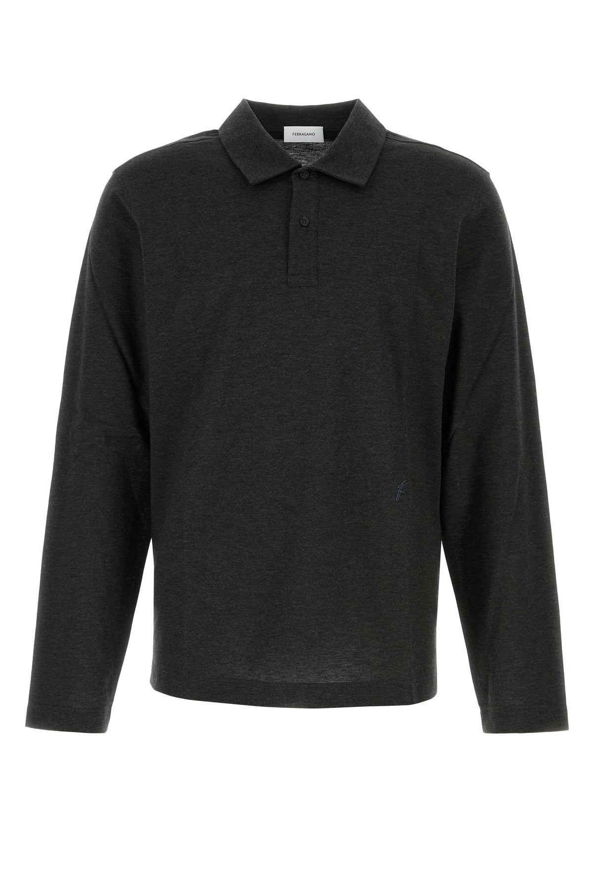 Long-sleeve polo shirt realized in cotton and cashmere characterized by tonal embroidered logo at the front.