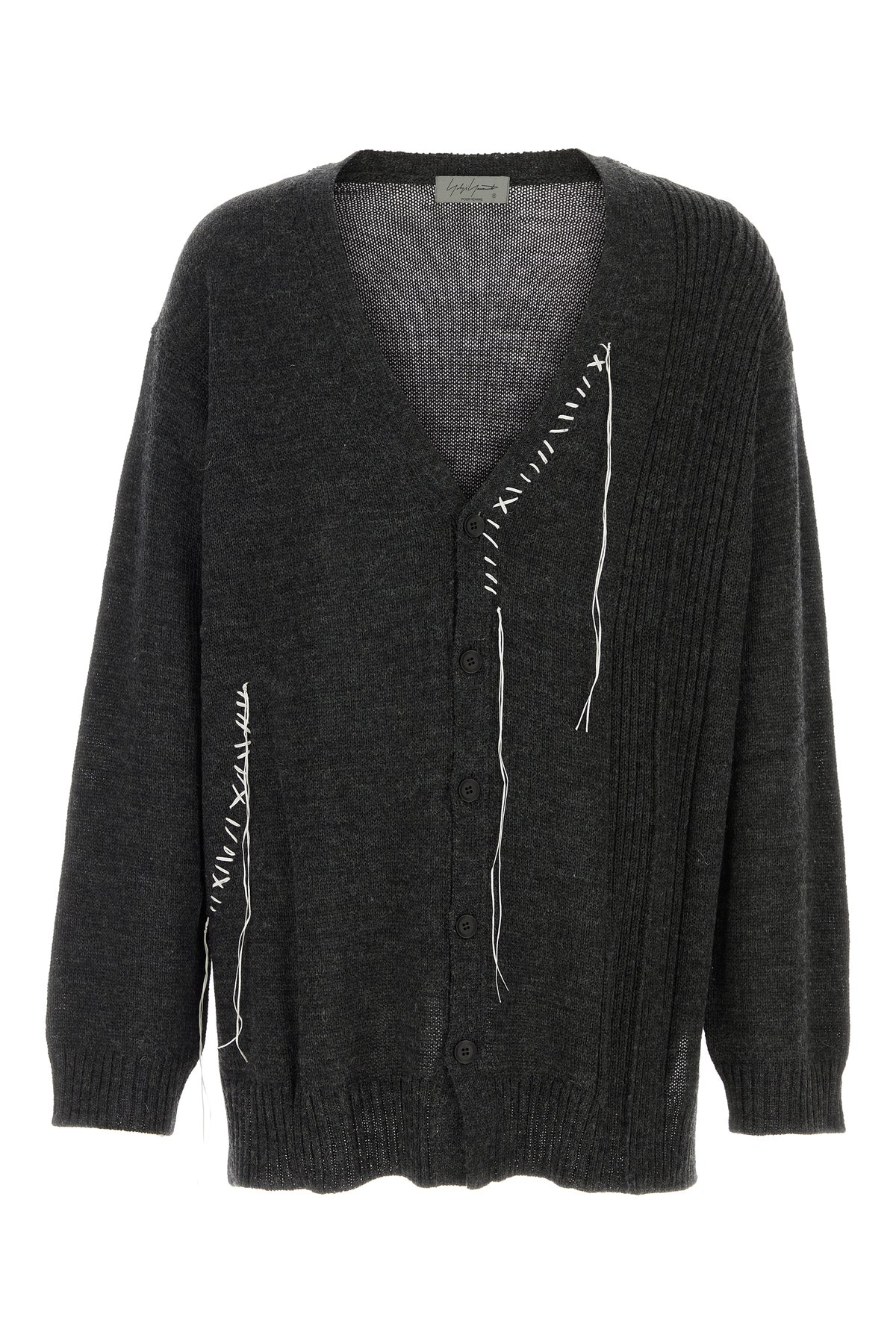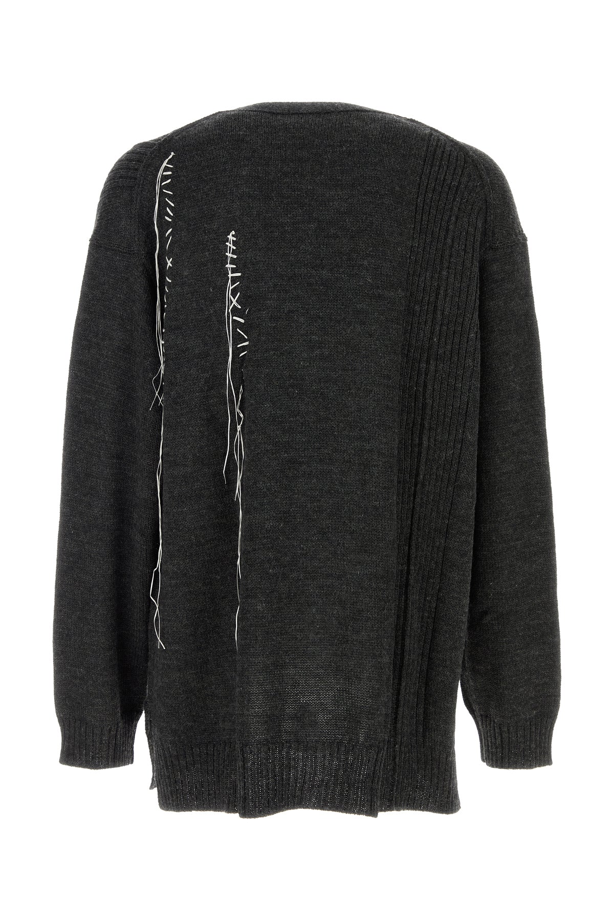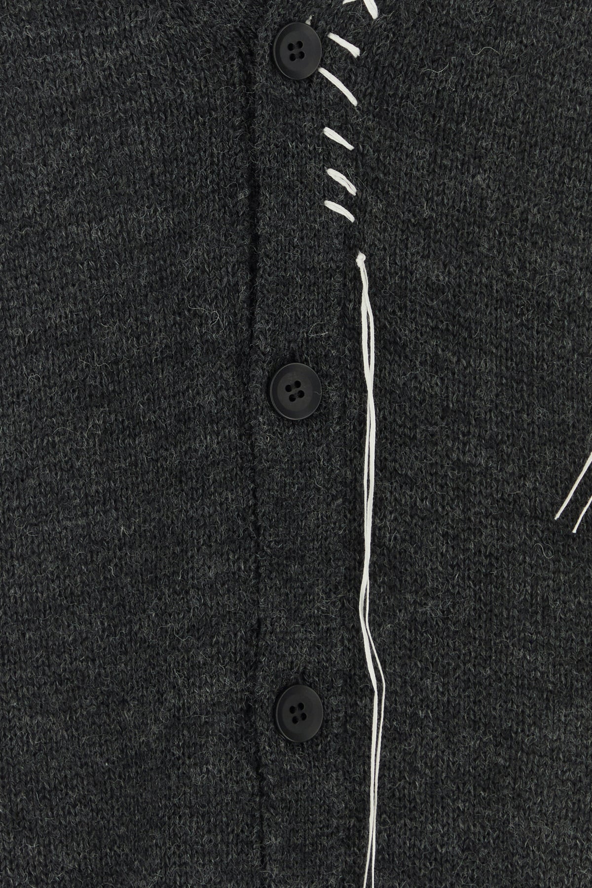 Oversize cardigan realized in pure wool characterized by peculiar embroideries at the front and at the back.
