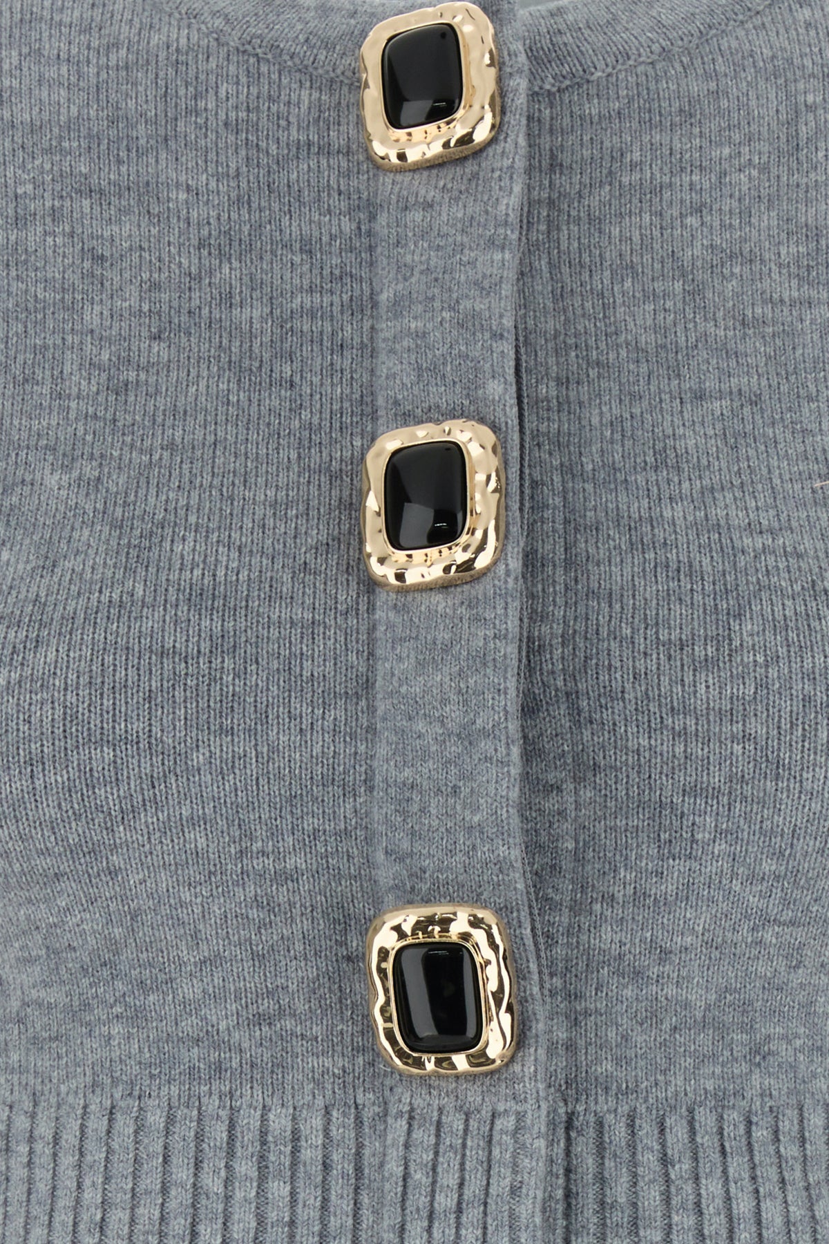 Cardigan realized in stretch wool blend characterized by jewel buttons.