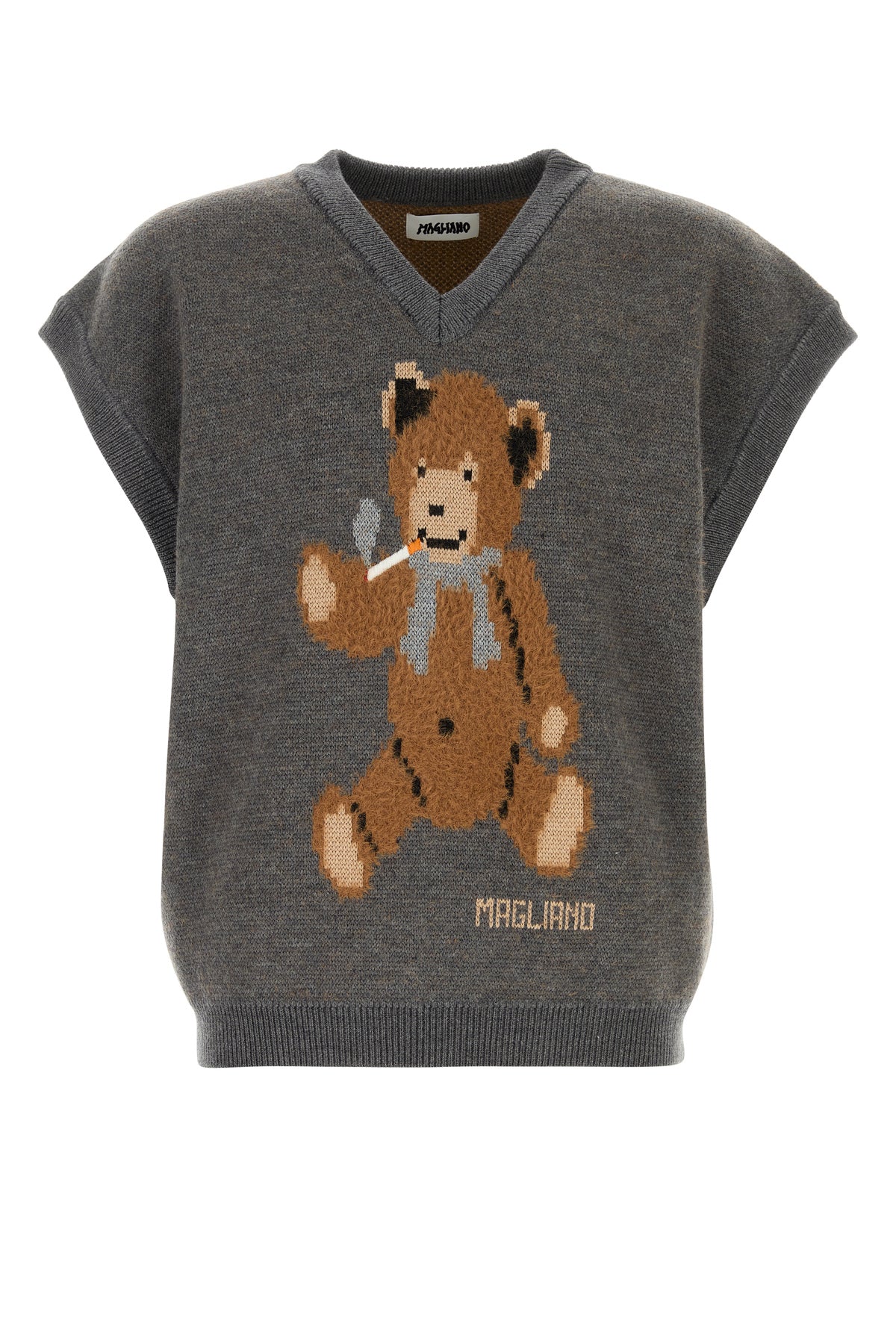 Vest realized in wool and nylon characterized by Teddy Bear embroidery at the front.