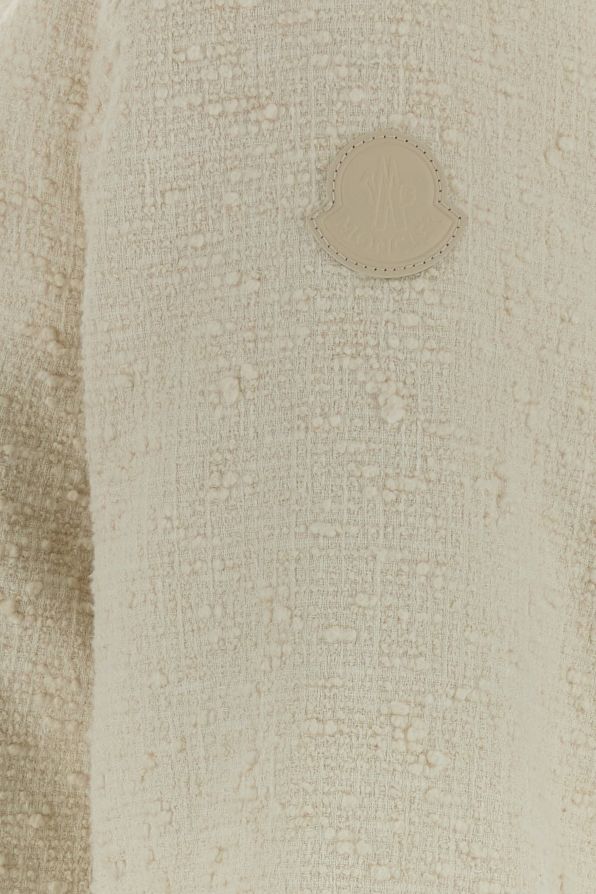 Down jacket realized in cotton blend boucle and quilted polyester at the back enriched by tonal logoed patch on the sleeve.
