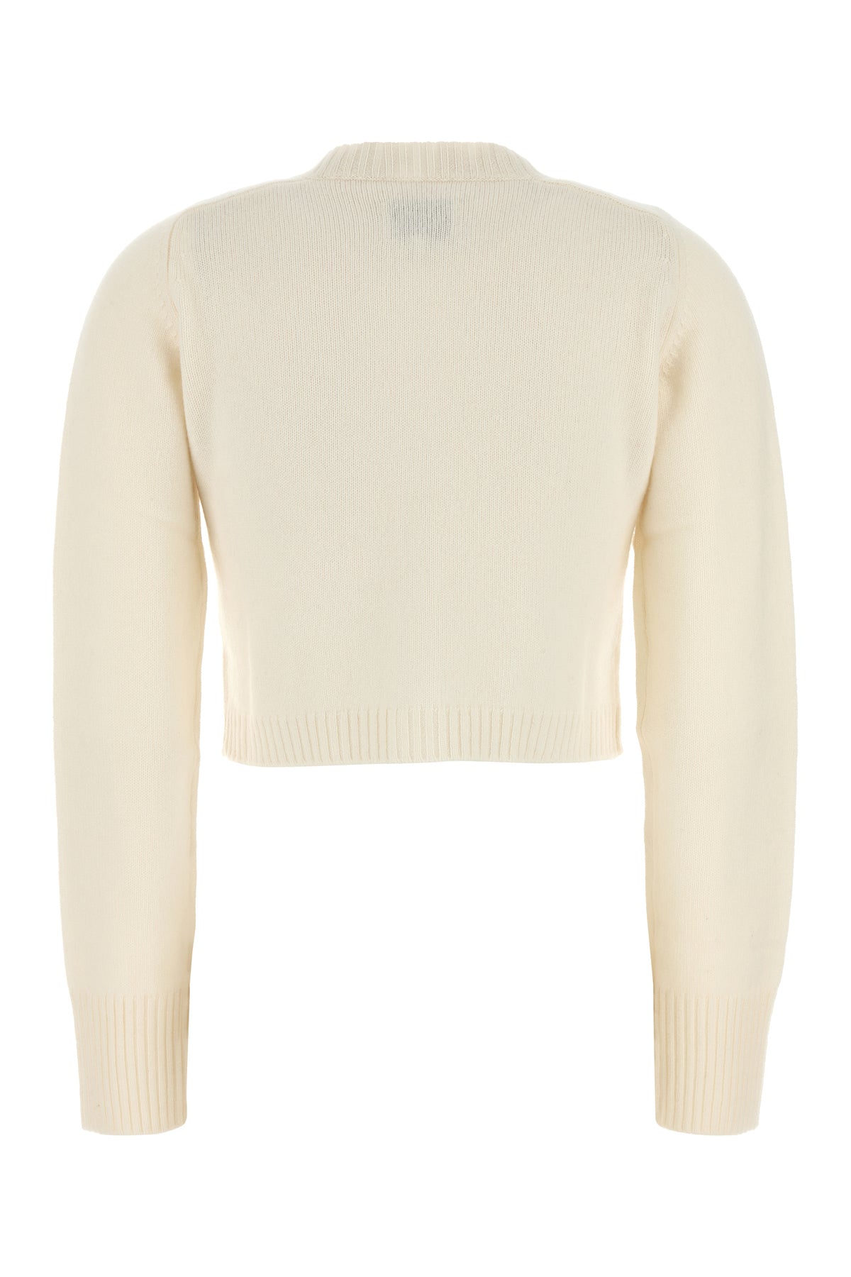 Short-cut cardigan realized in pure cashmere characterized by tonal embroidered logo on the hemline.