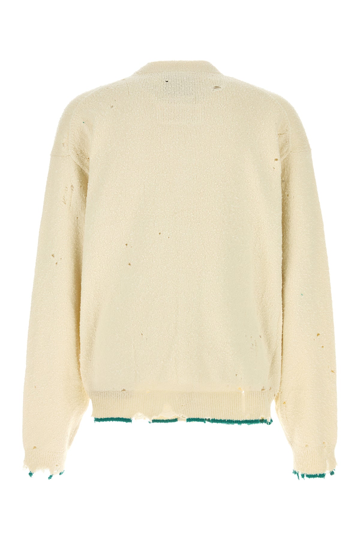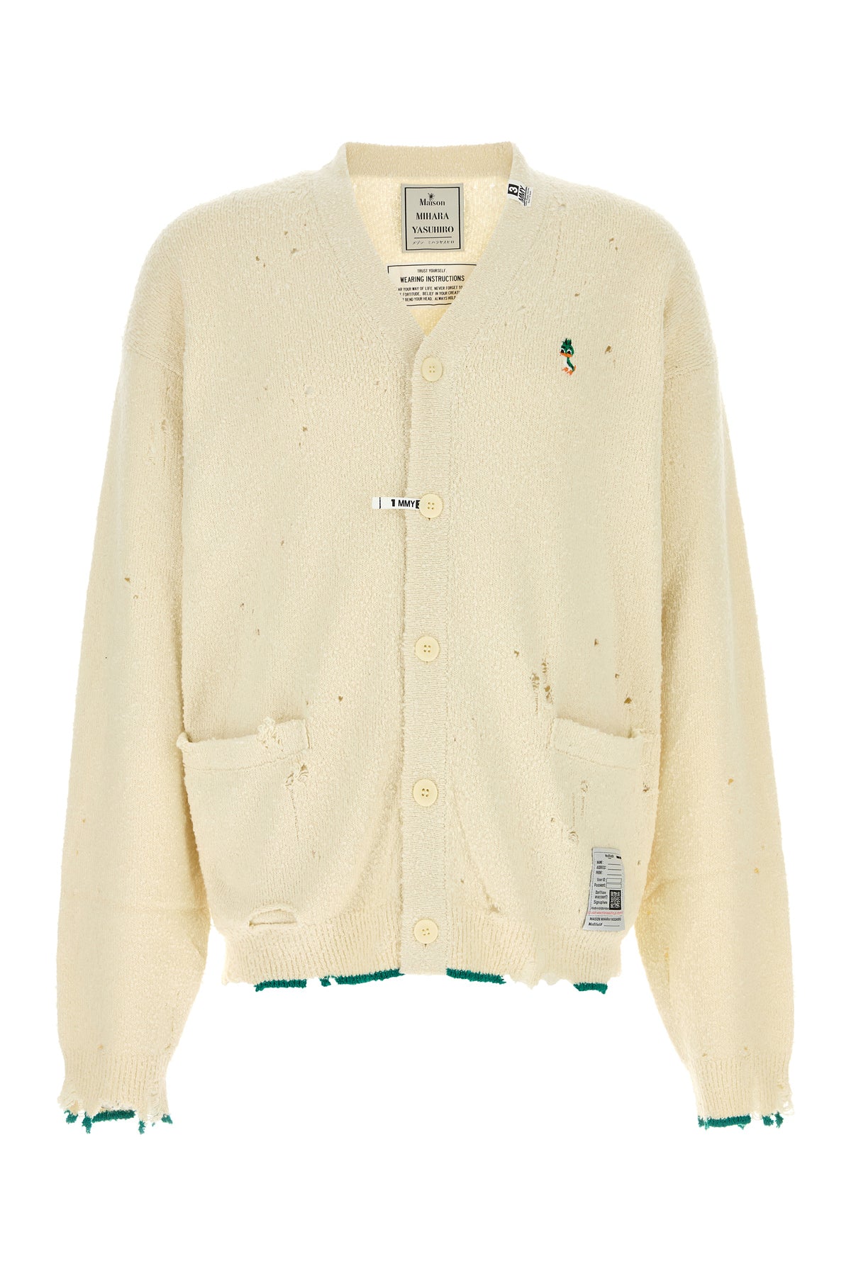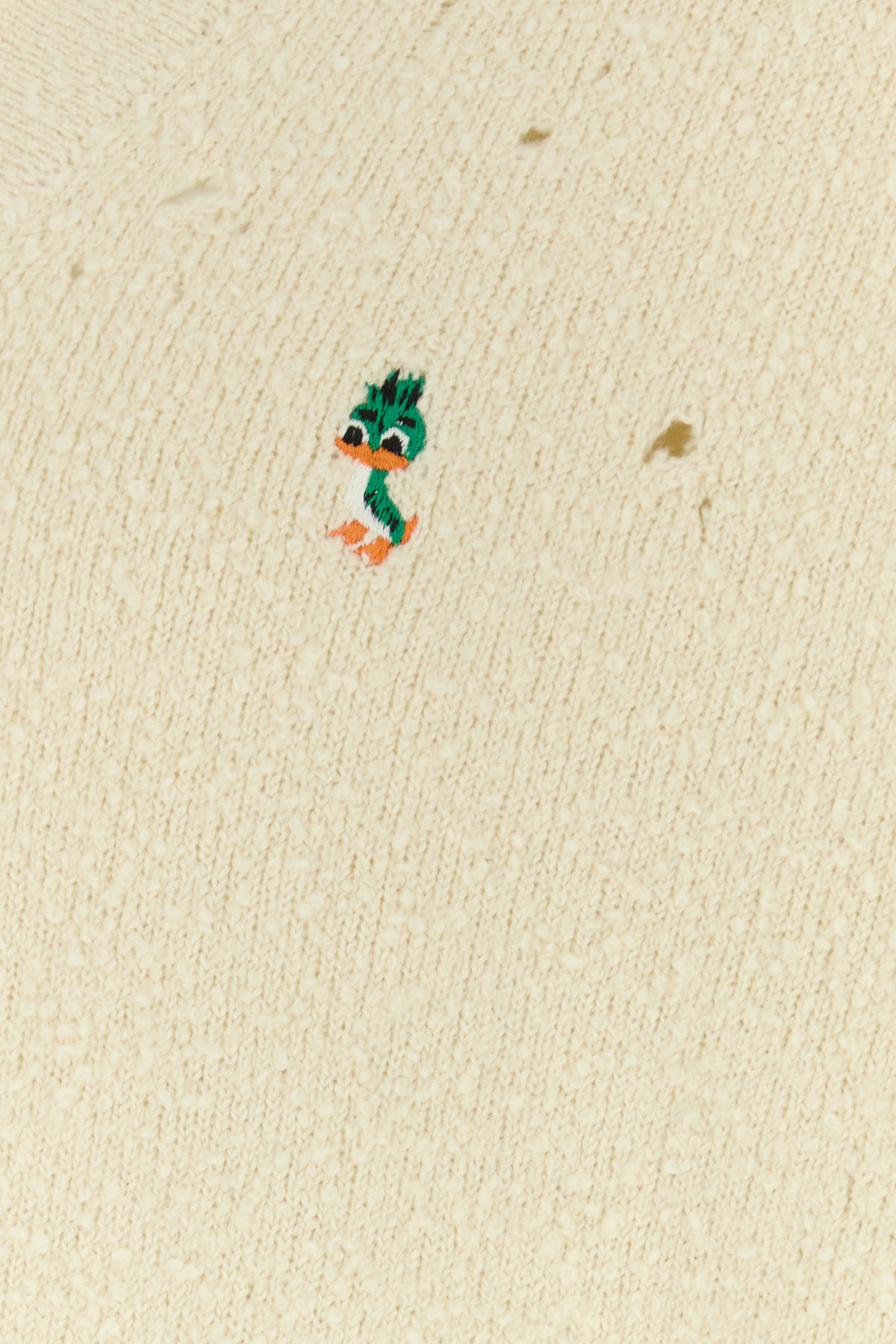 Cardigan realized in distressed effect pure cotton characterized by peculiar embroidery on the chest.