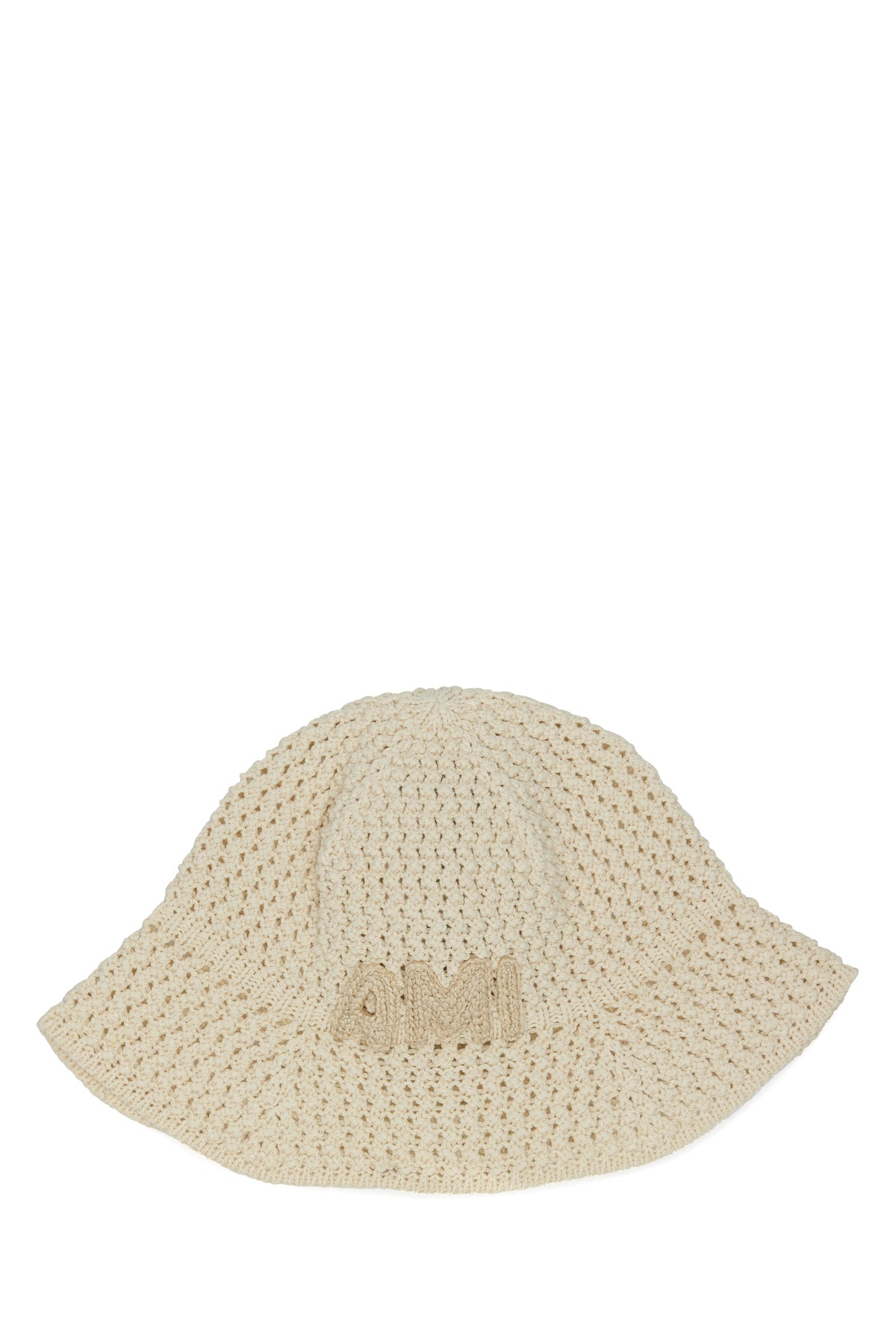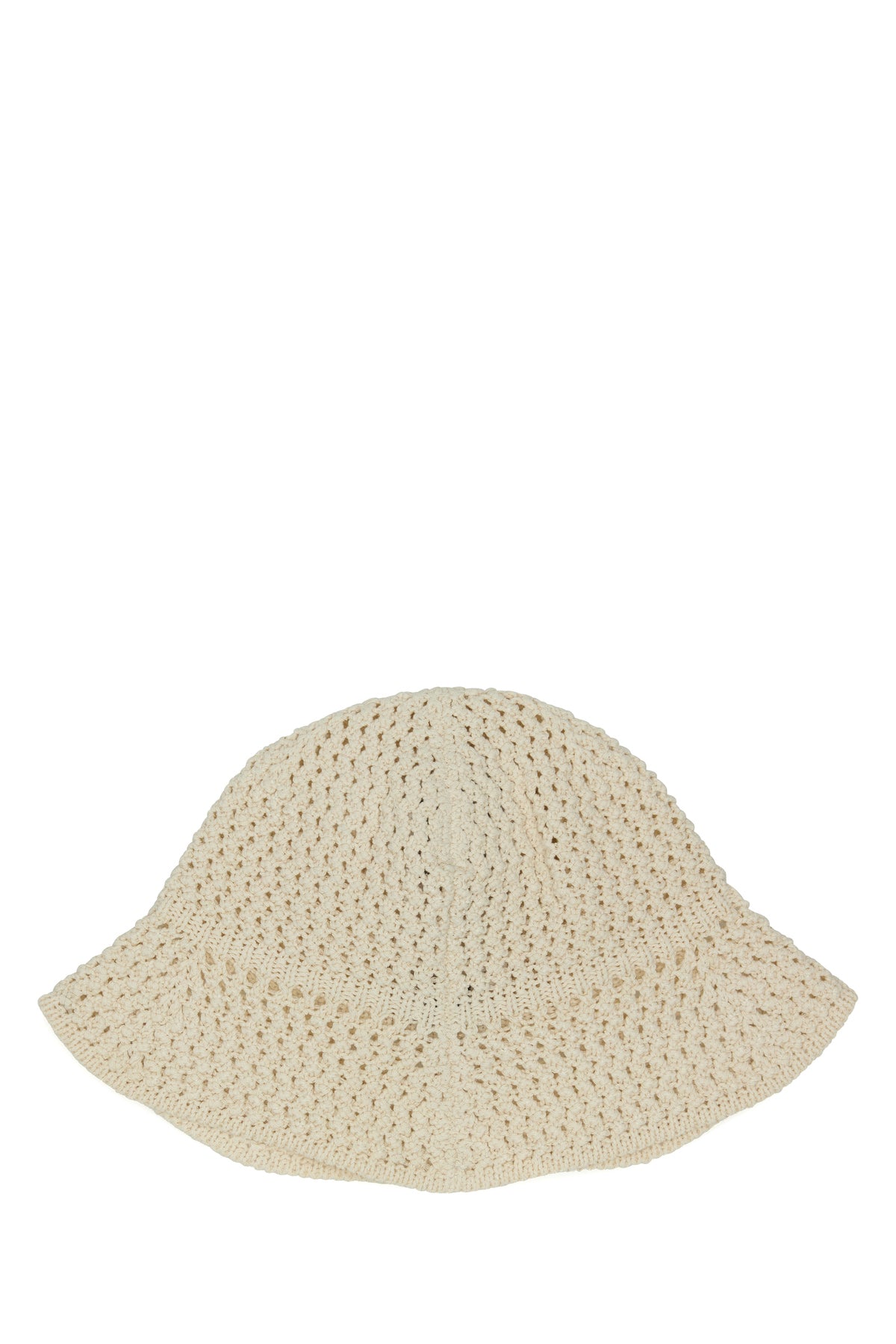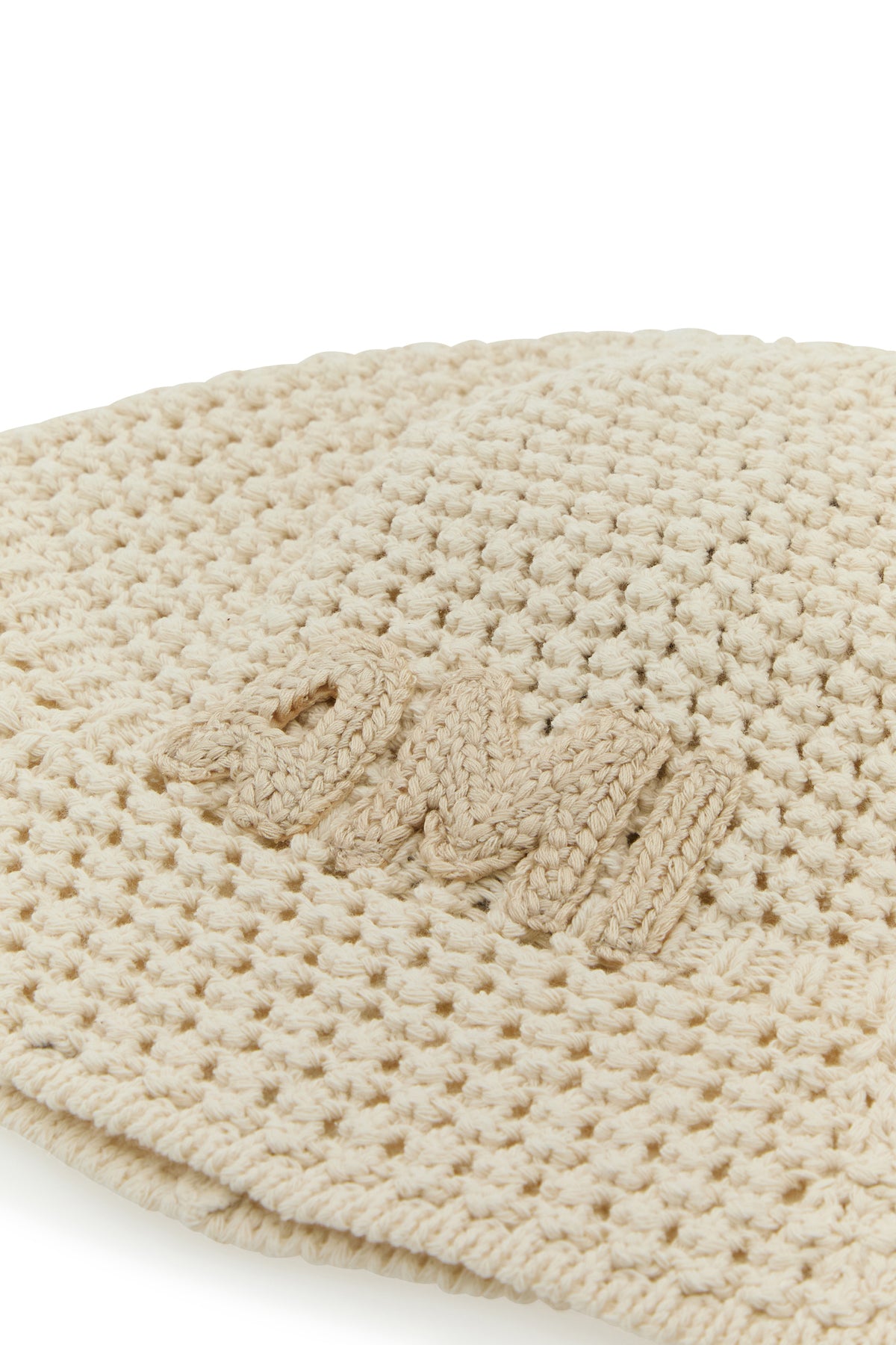 Bucket hat realized in crochet characterized by tonal embroidered logo at the front.