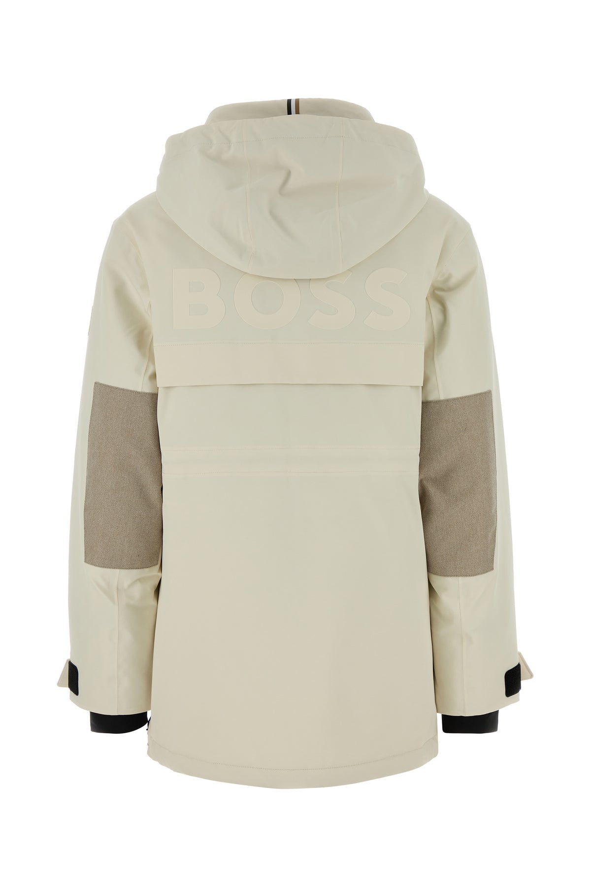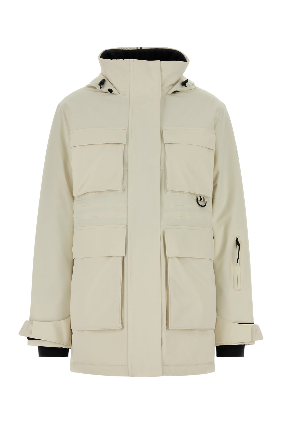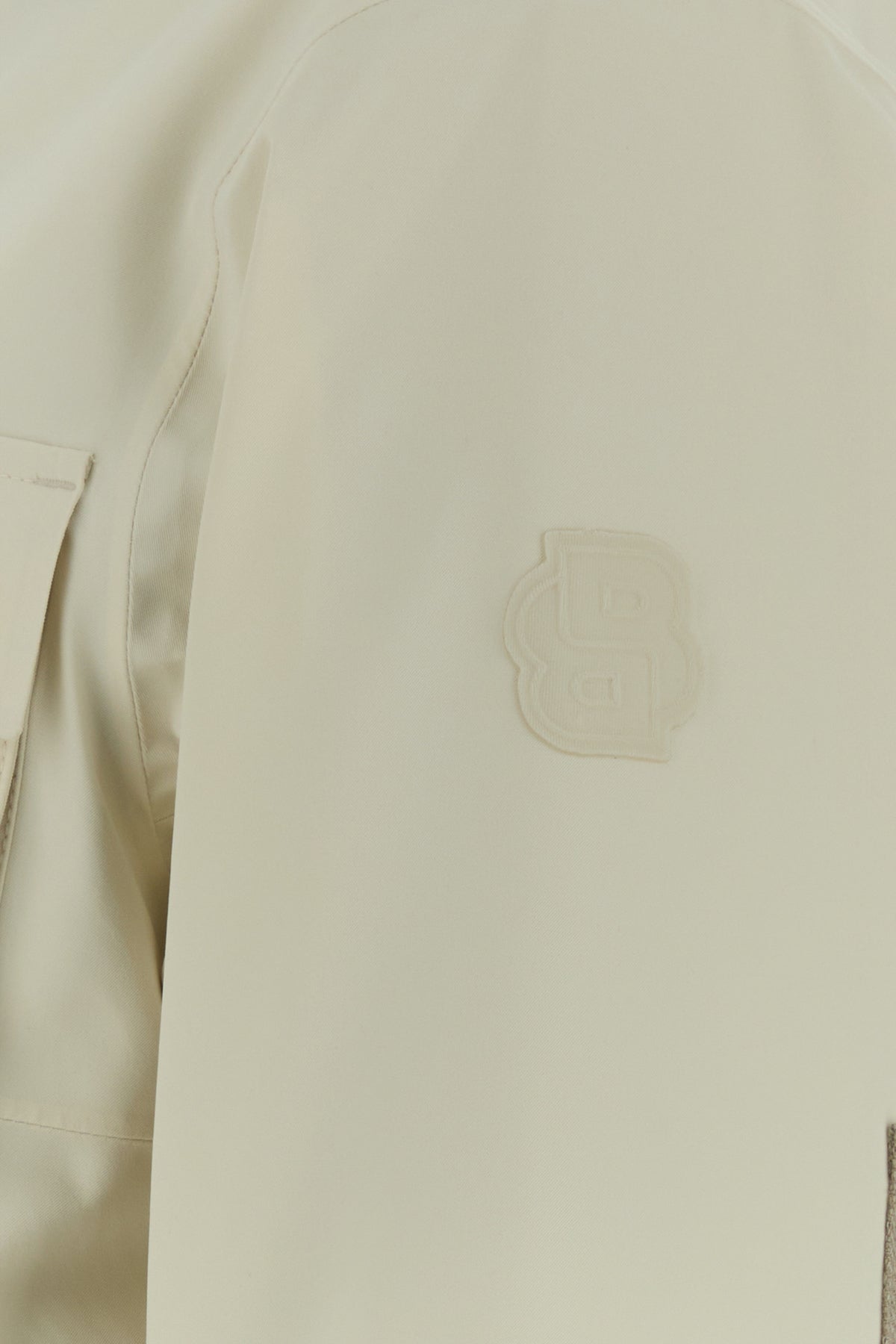 Ski jacket realized in stretch nylon characterized by logo in relief at the back enriched by logoed patch on the sleeve.