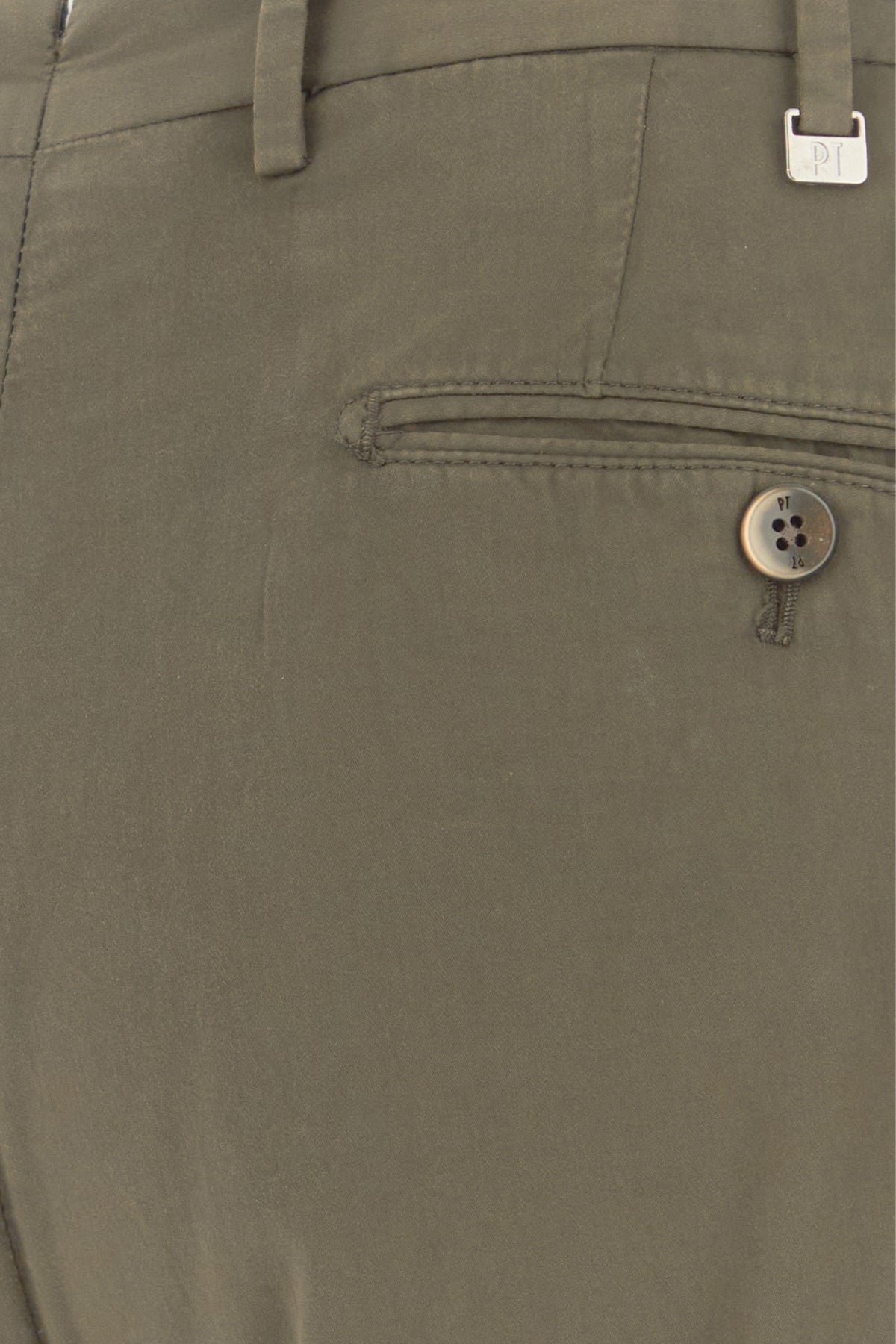 Pant realized in stretch cotton blend characterized by central slit at the back.