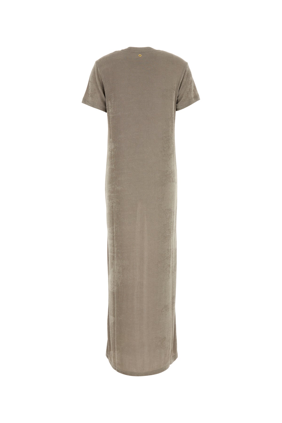 Long-cut t-shirt dress realized in stretch polyester enriched by logoed metal detail at the back.