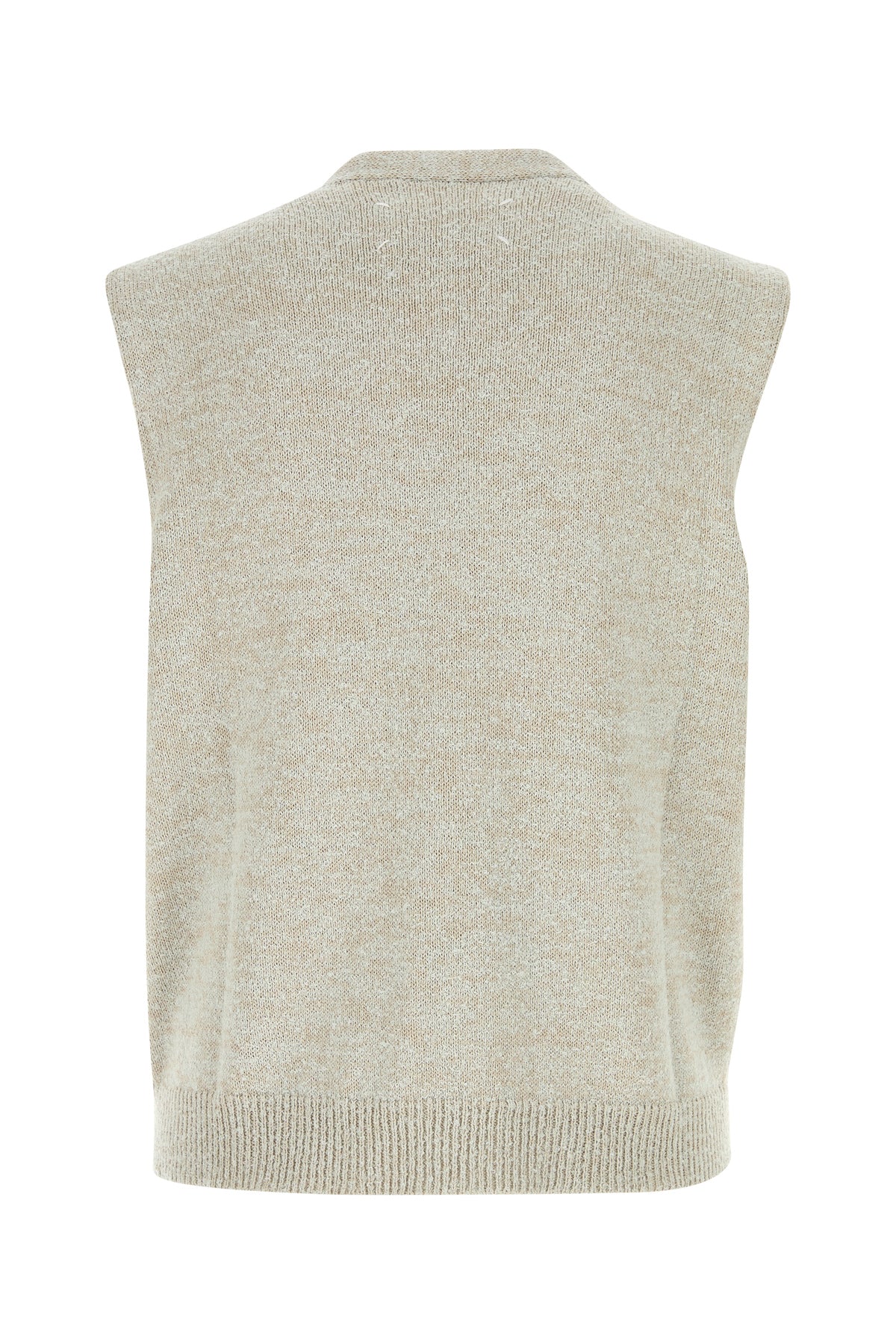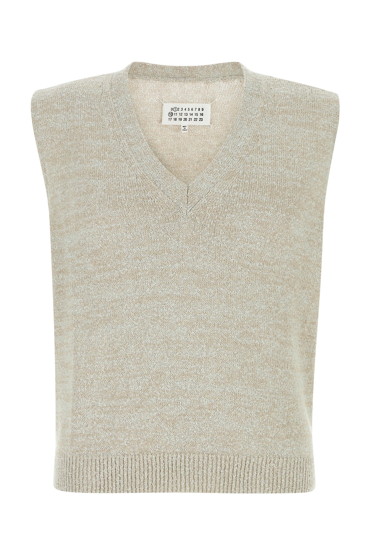 Vest realized in cotton blend characterized by iconic contrasting stitching at the back.