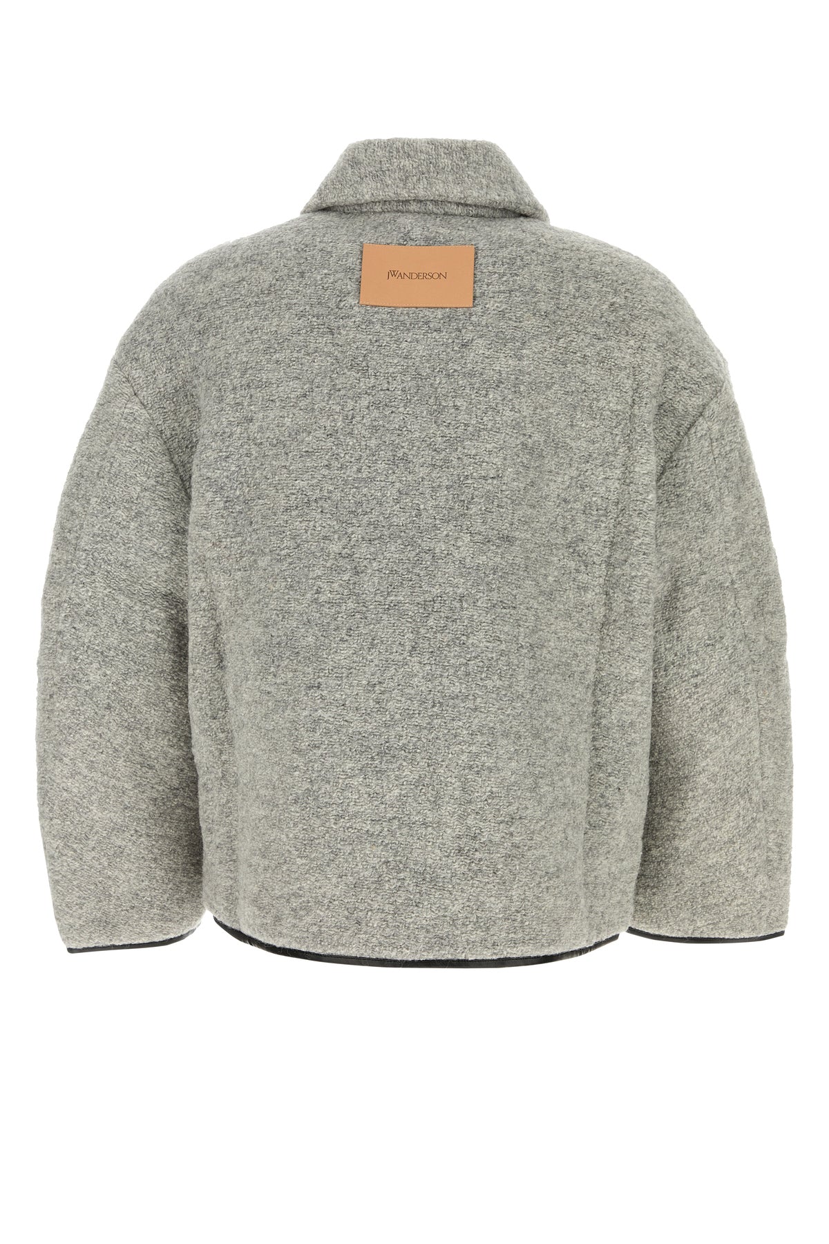Jacket realized in virgin wool blend with contrasting synthetic leather trimmings enriched by JW Anderson label at the back.