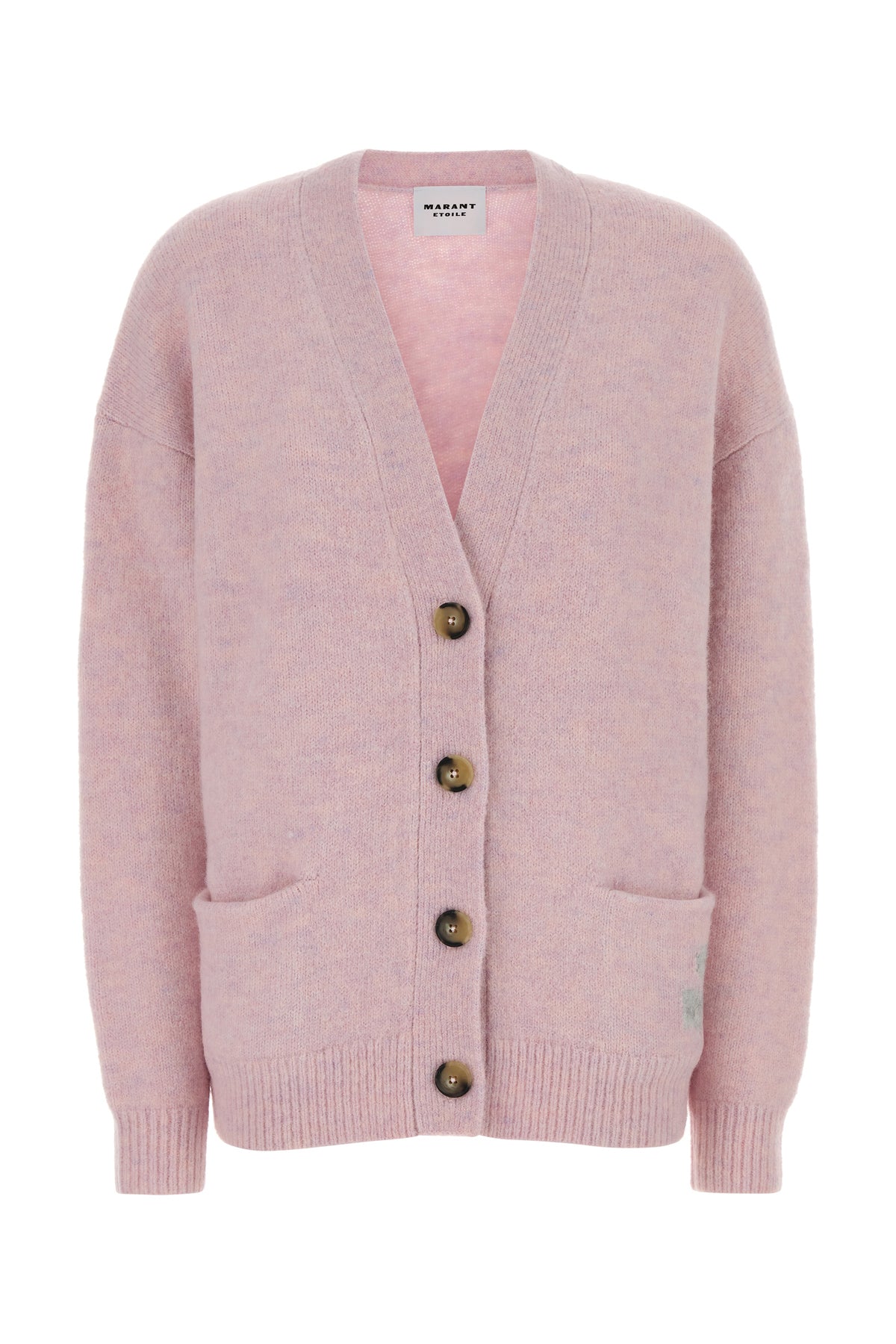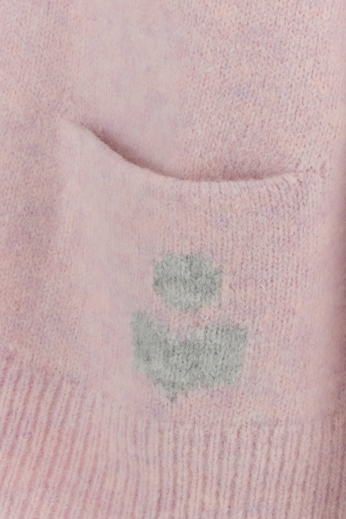Cardigan realized in alpaca blend characterized by contrasting embroidered logo on the hemline.