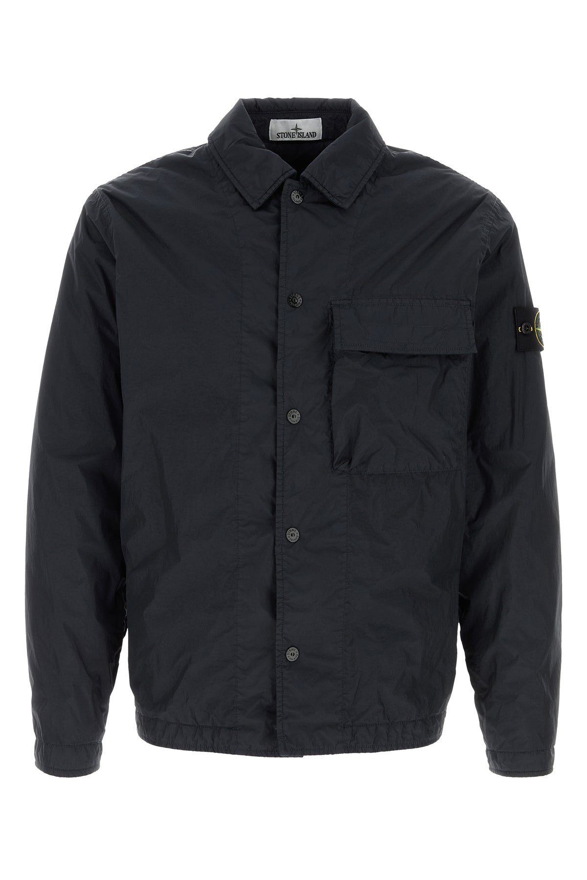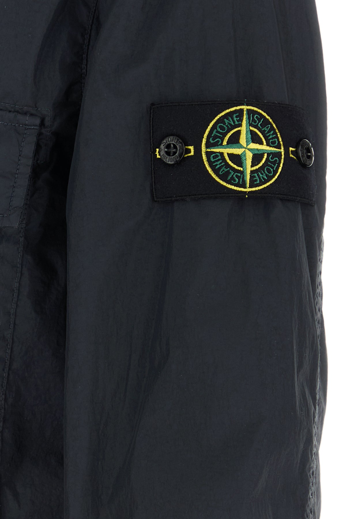 Jacket realized in nylon enriched by detachable logoed label on the sleeve.