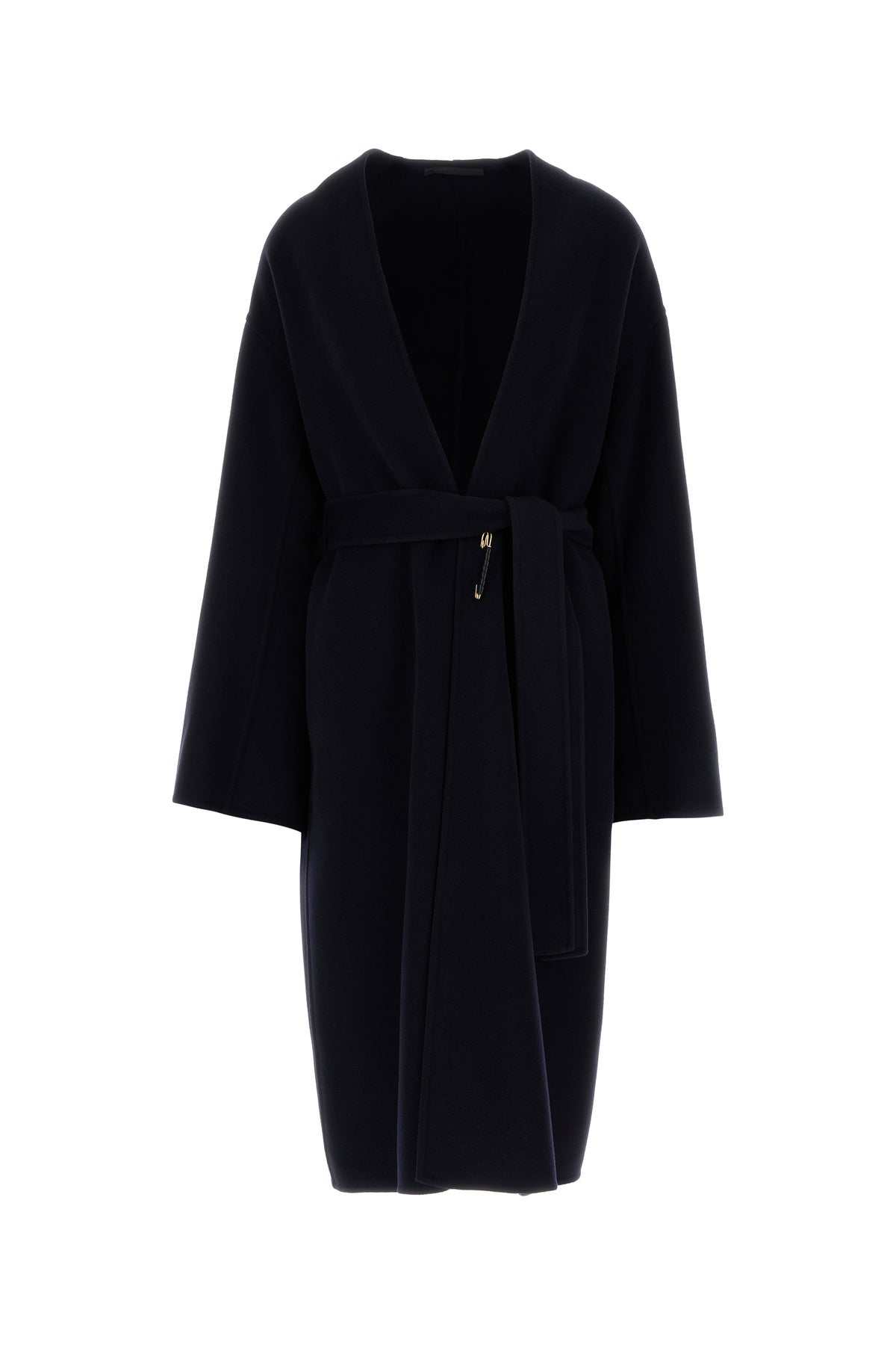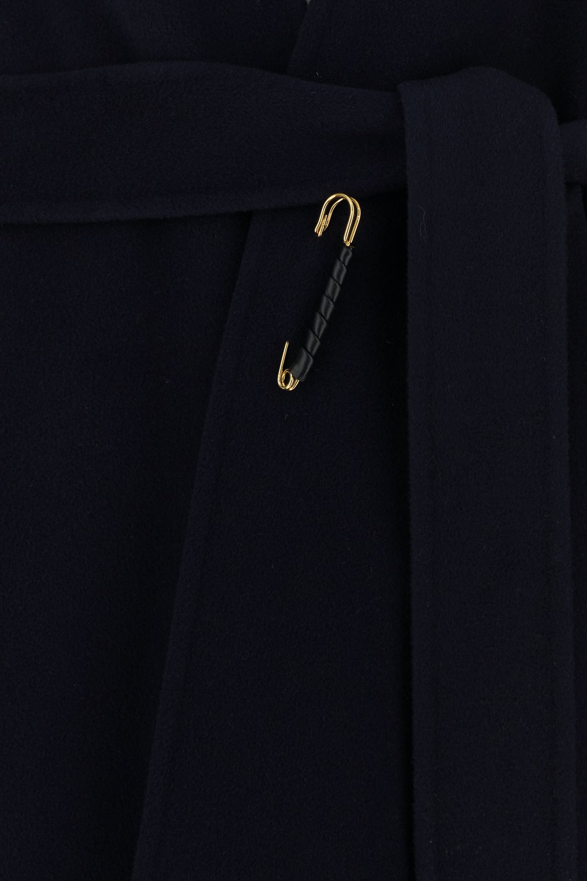 Coat realized in virgin wool an cashmere enriched by decorative pin at the front.