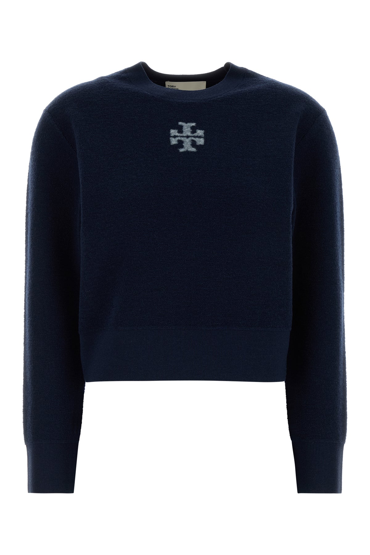 - Ribbed crew-neck, cuffs and hemline