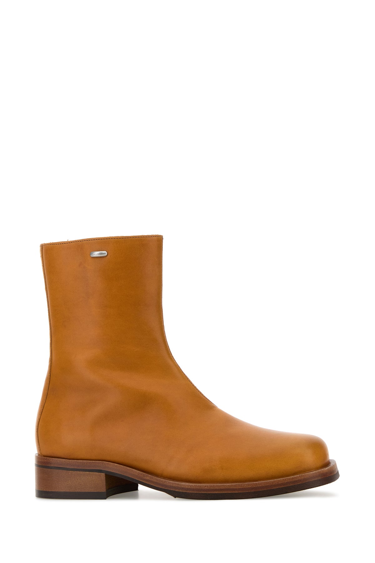 Ankle boots realized in leather enriched by logoed metal plate on the side.