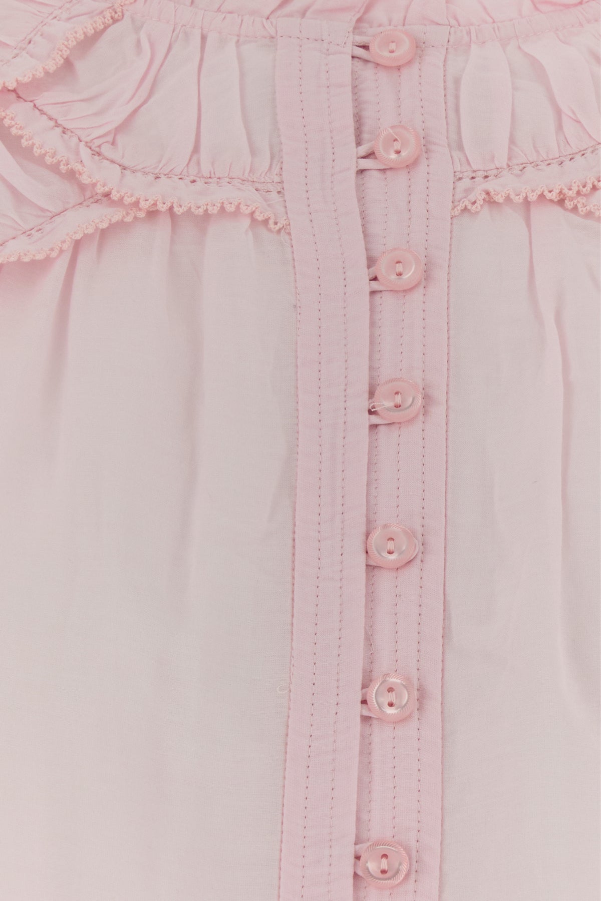 Shirt realized in cotton blend enriched by contrasting ruffles at the top.