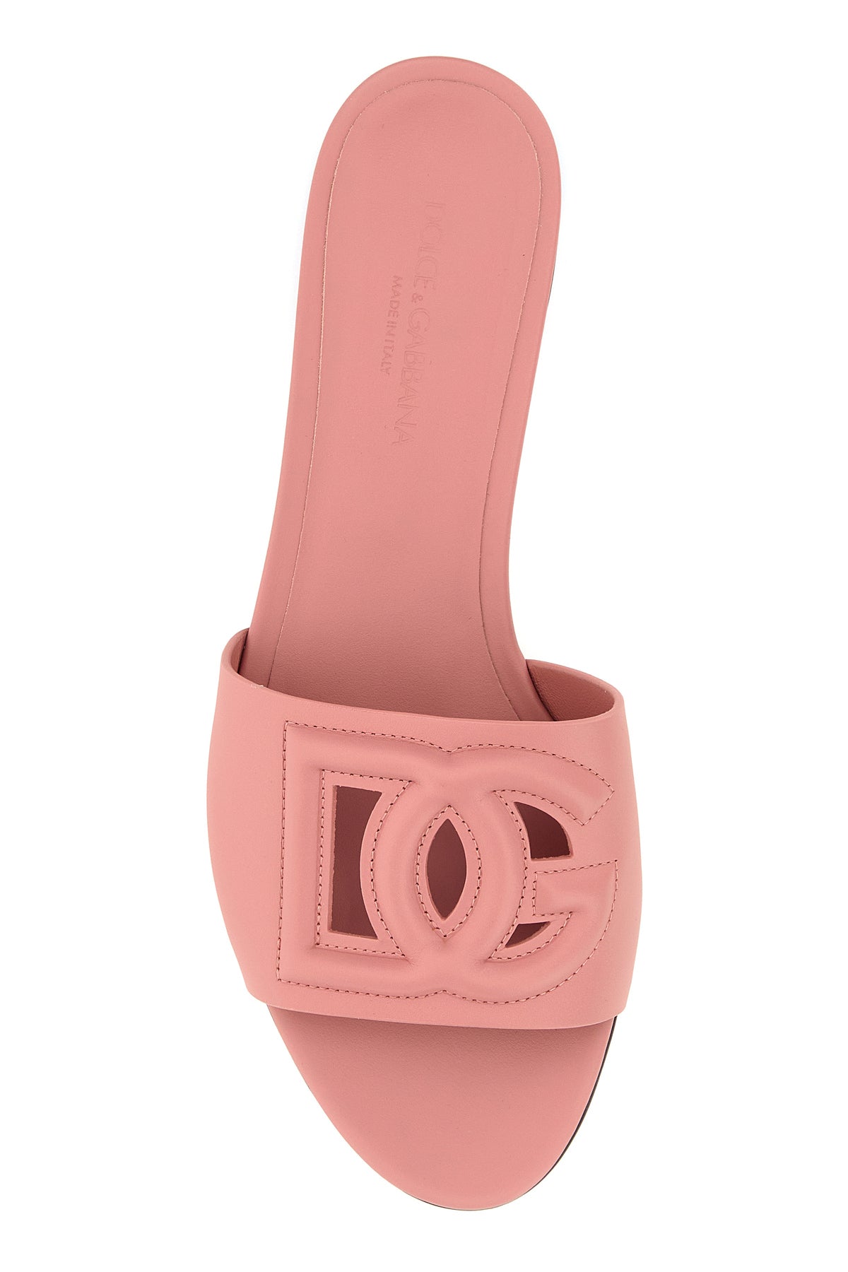 Slippers realized in calf nappa leather characterized by DG embroidery with cut-out detail on the band.