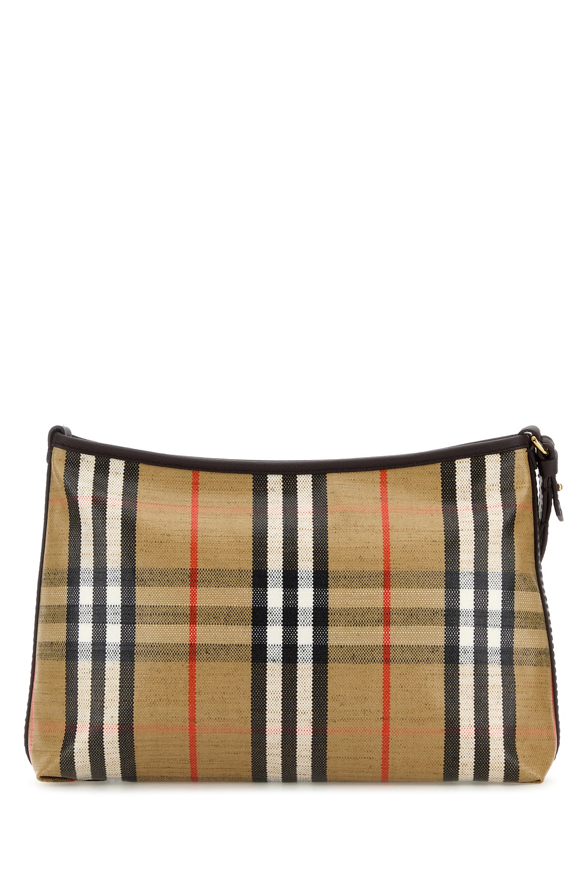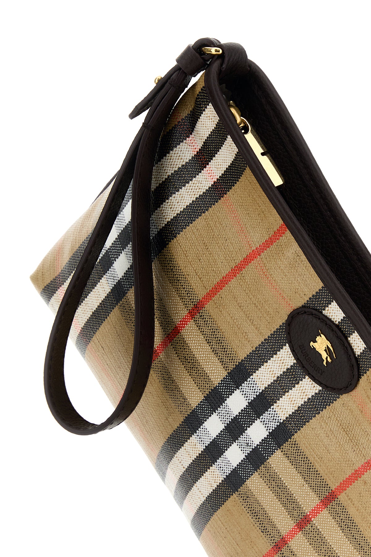 Clutch realized in coated canvas characterized by Burberry Check print on the entire surface enriched by Equestrian Knight patch at the front.