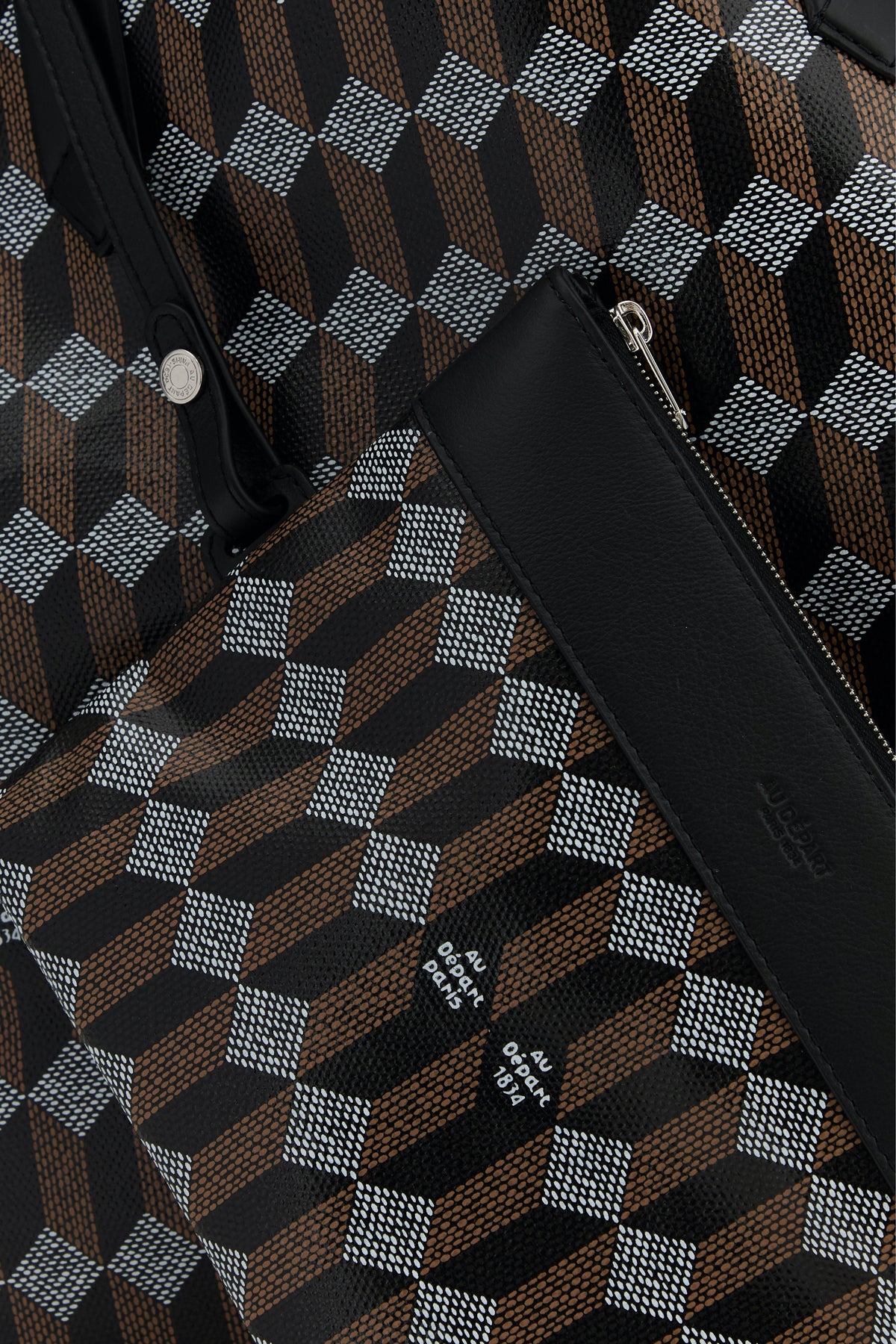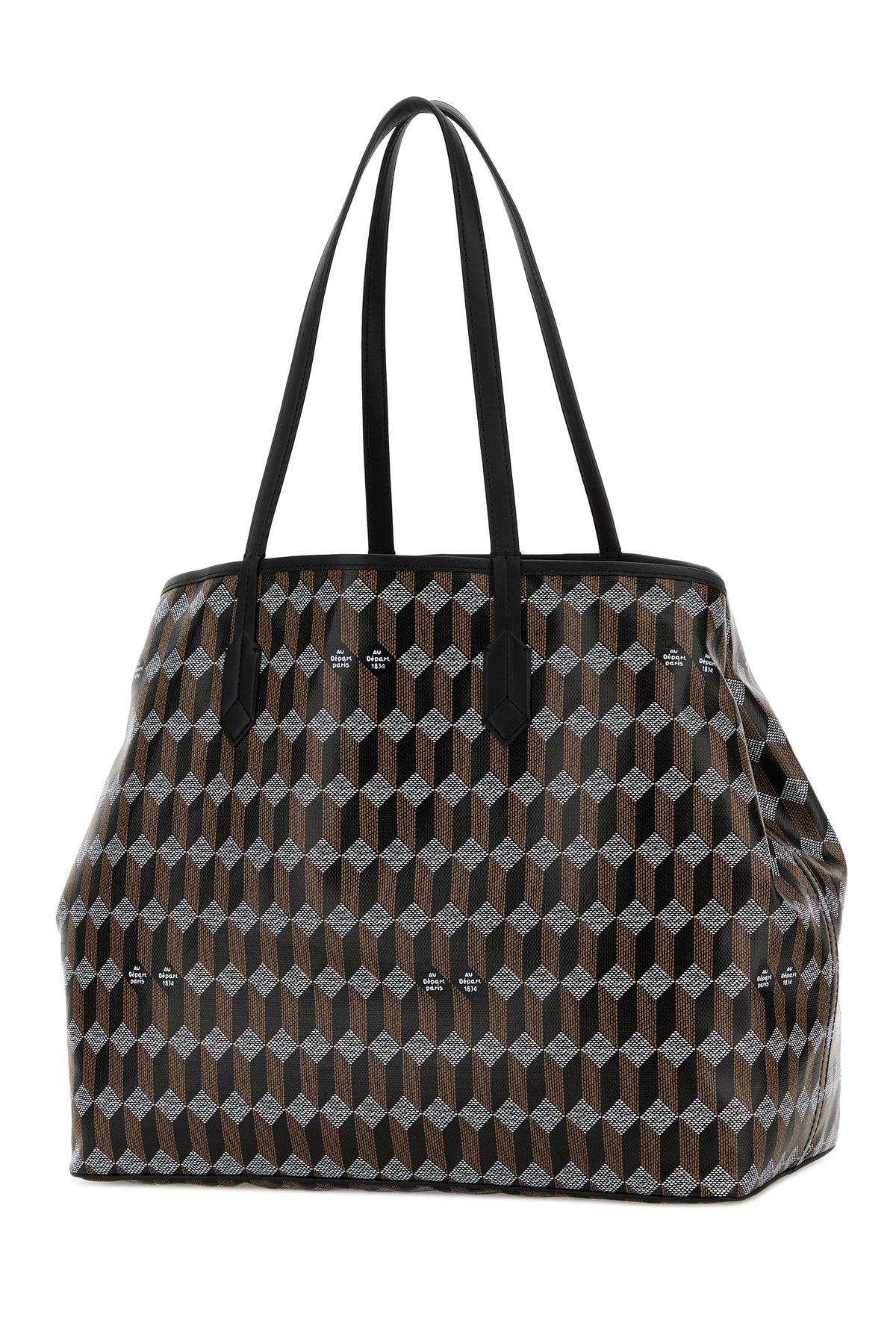 Shopping bag realized in coated canvas characterized by peculiar logoed print on the entire surface.