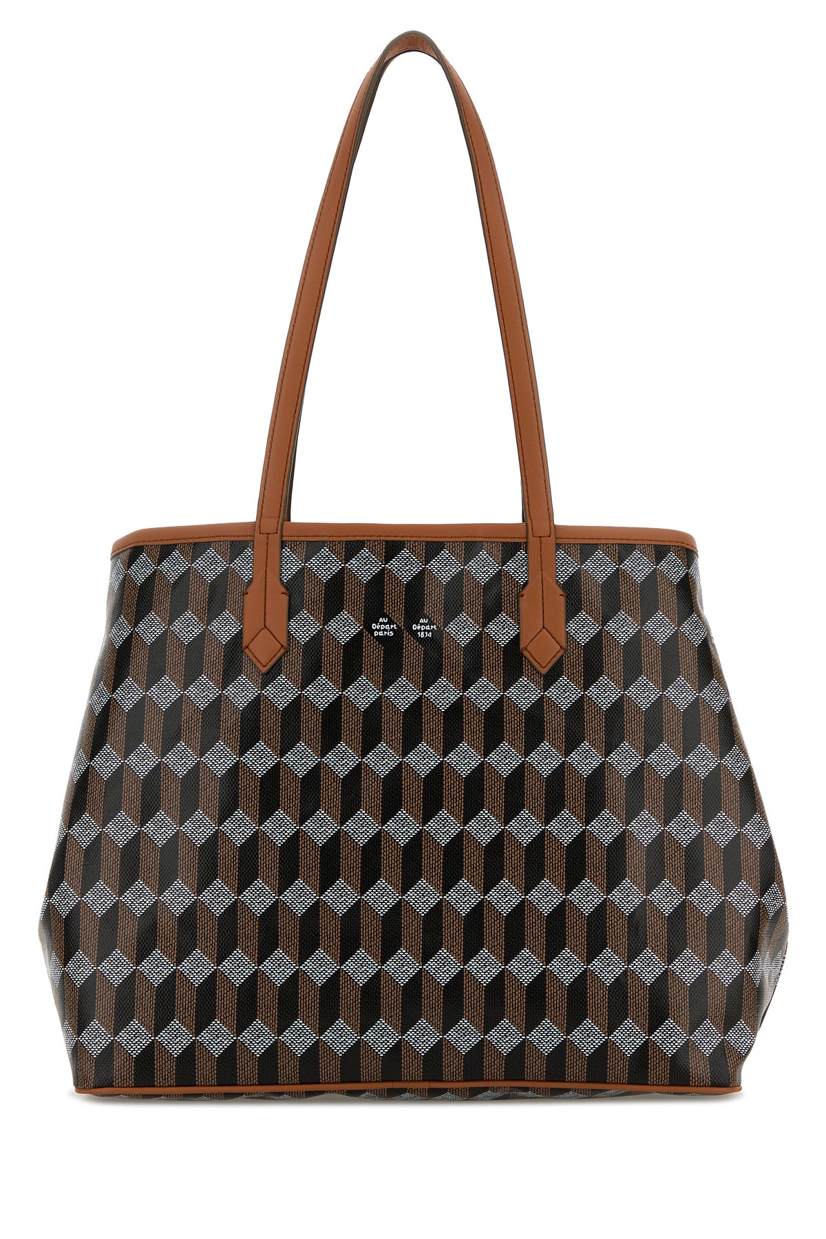 Shopping bag realized in coated canvas characterized by geometric print on the entire surface.