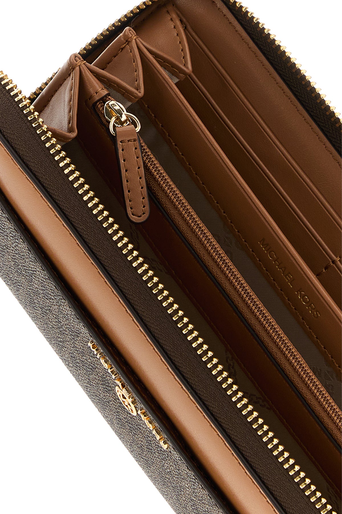 - Interior with a gusseted compartment, a zip pocket, two slit pockets and twelve credit card slots
