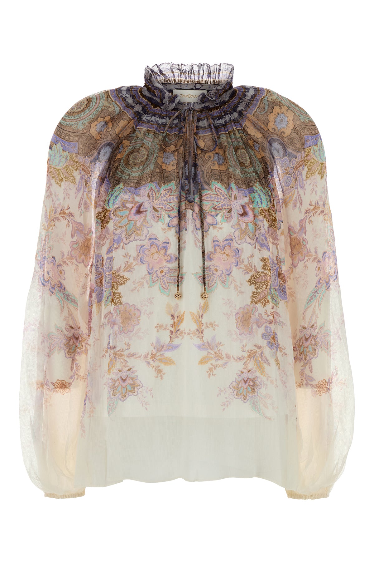 Blouse realized in crepe characterized by peculiar print on the entire surface.