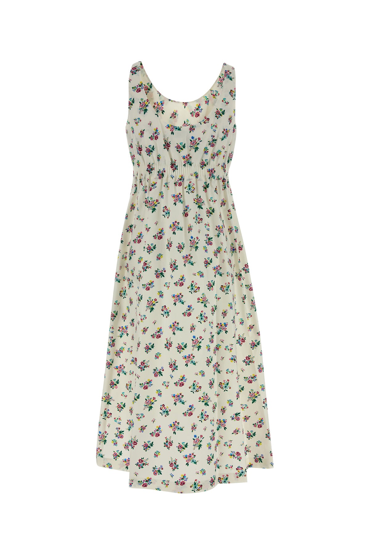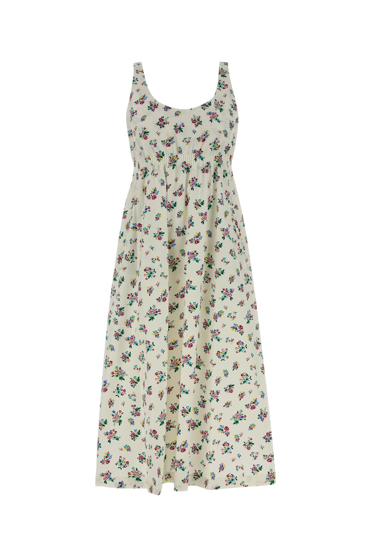 Midi-length dress realized in pure cotton poplin characterized by floral motif print on the entire surface.