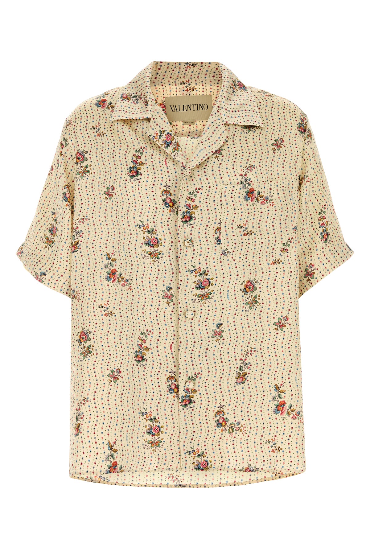 Short-sleeves shirt realized in pure silk characterized by peculiar print on the entire surface.