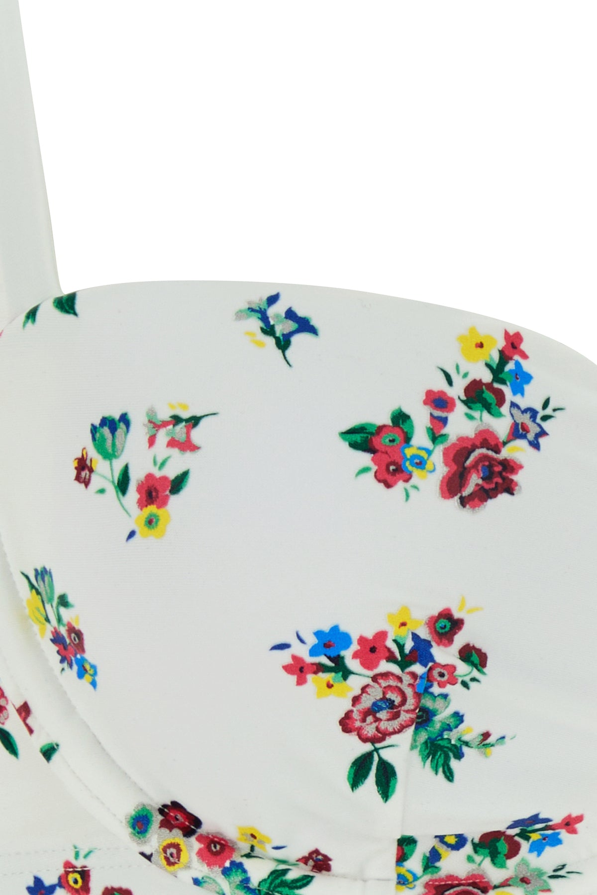 Balcony bikini top realized in stretch nylon characterized by floral print on the entire surface.