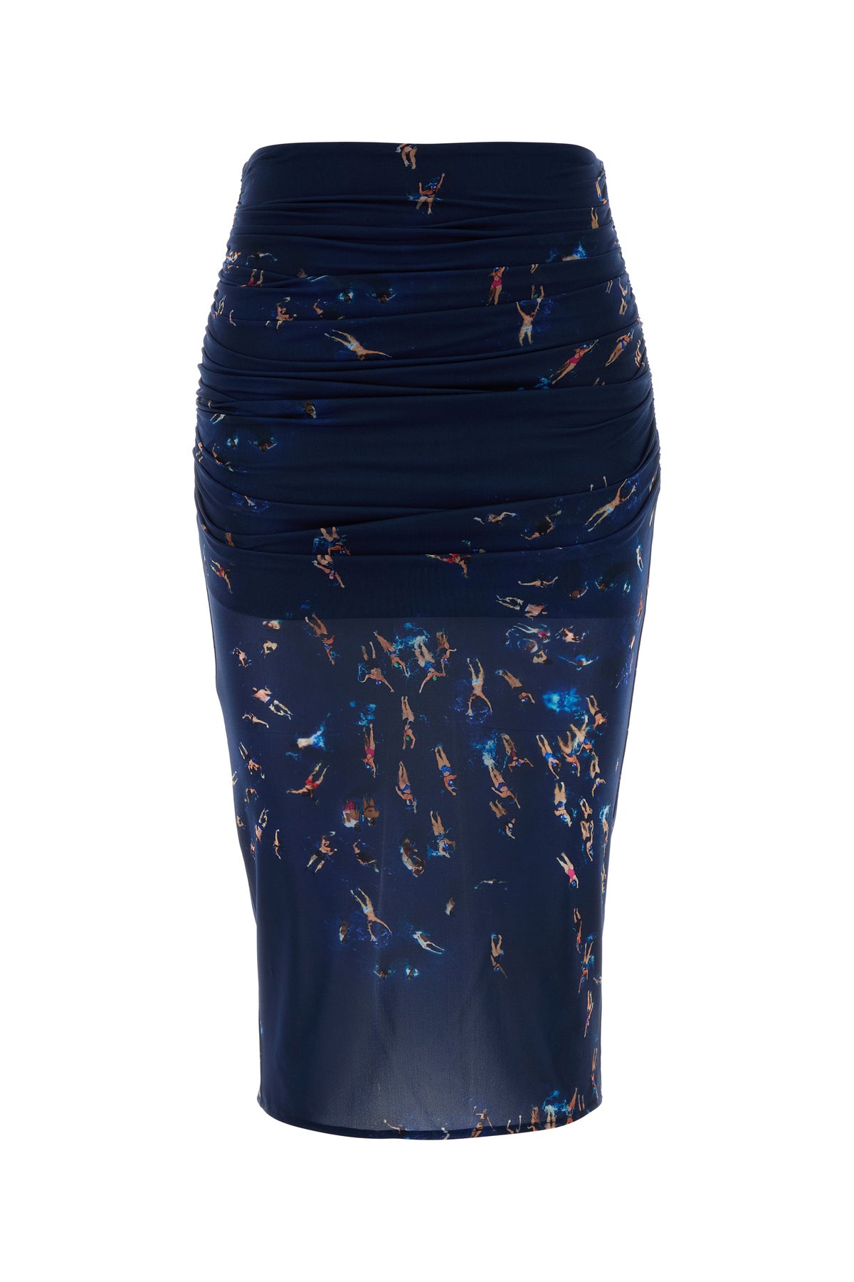 Midi-length skirt realized in stretch nylon characterized by peculiar print on the entire surface.