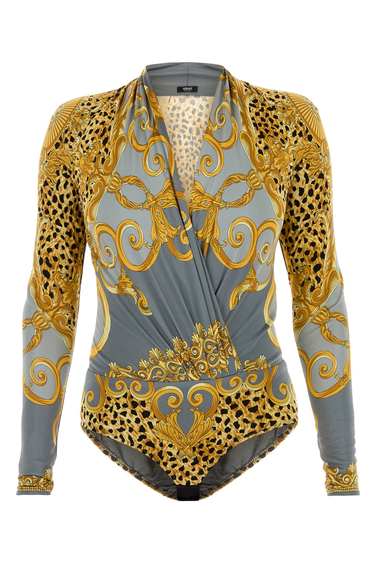 Draped bodysuit realized in viscose characterized by Cheetah Foulard print on the entire surface.