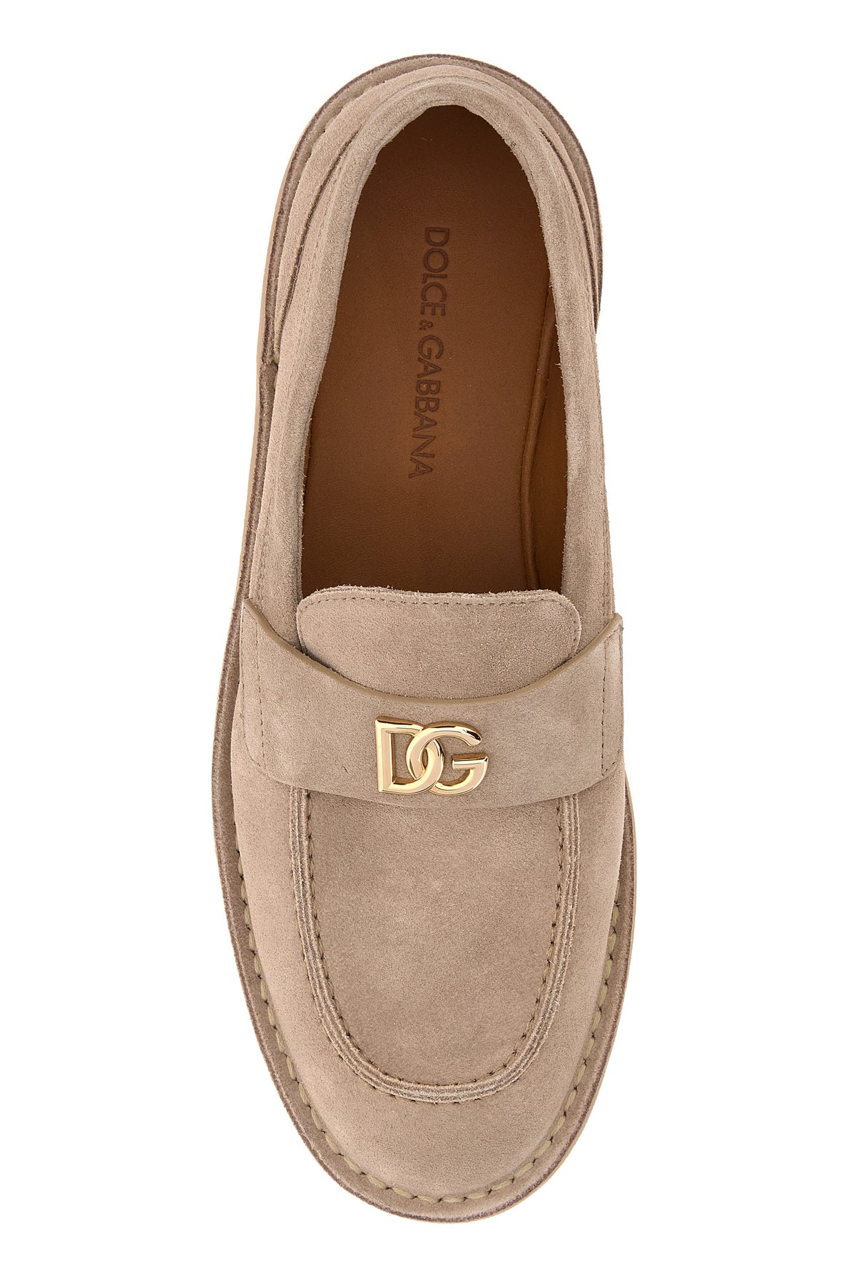 Loafers realized in calf suede enriched by DG metal detail on the vamp.