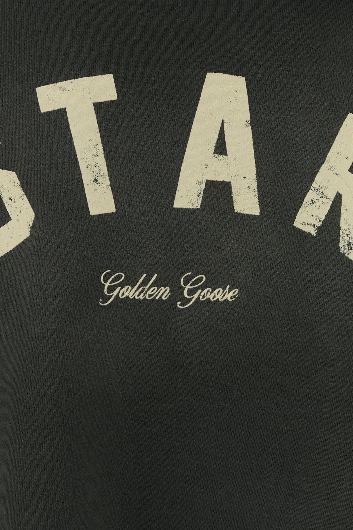 Sweatshirt realized in stonewashed and slightly distressed pure cotton characterized by logoed print on the cuff and at the back enriched by iconic Star metal details at the back.