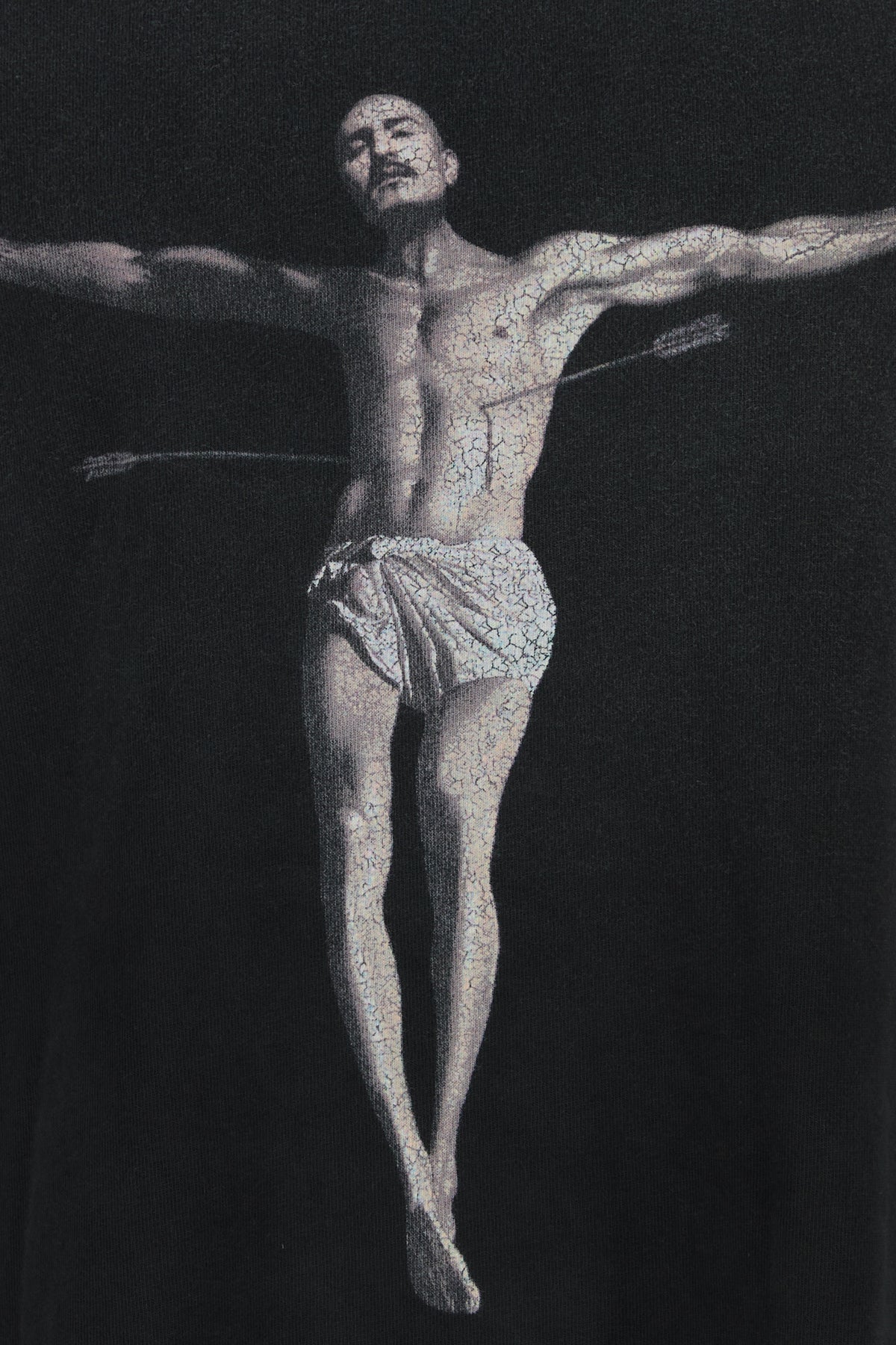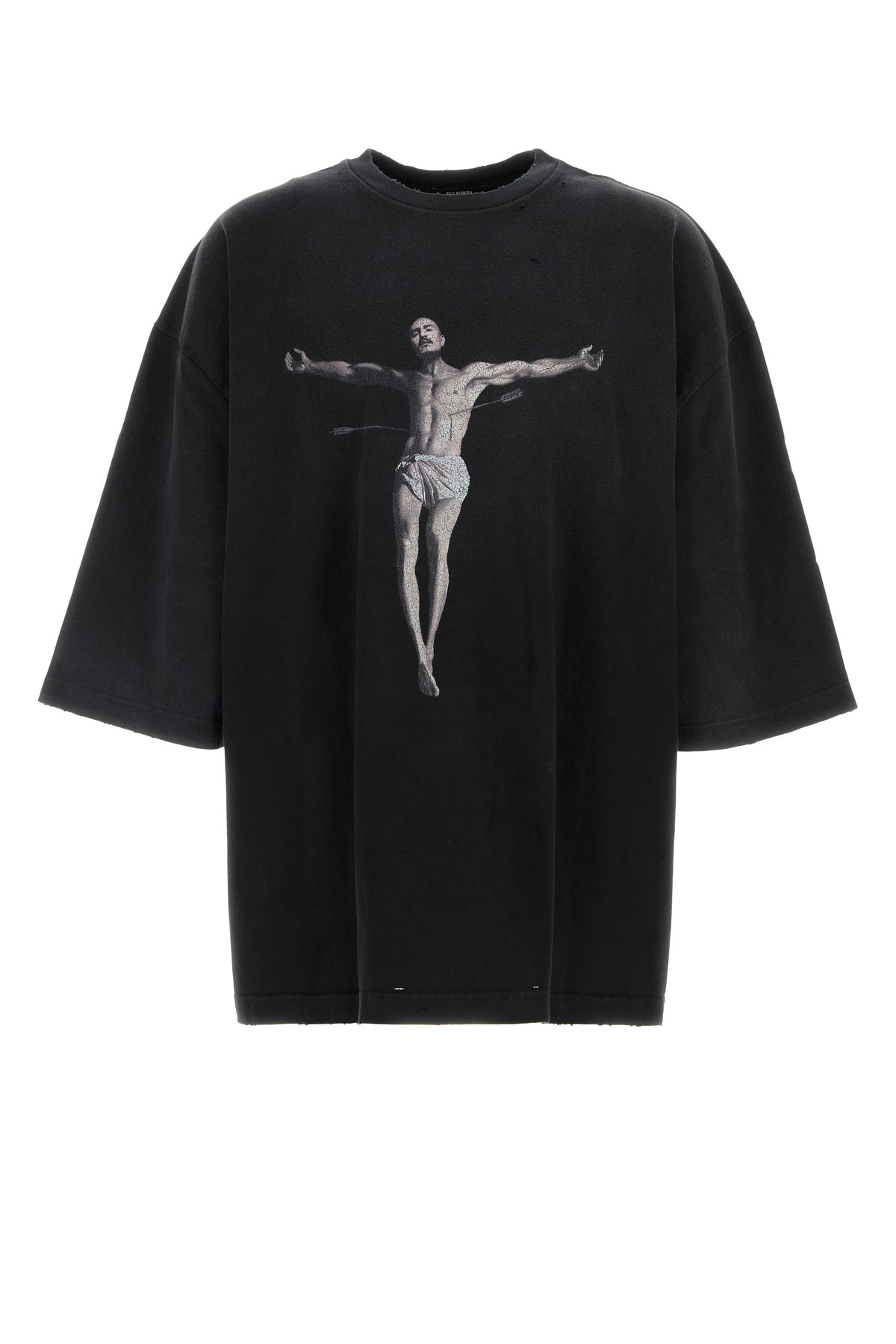 Oversize t-shirt realized in distressed effect pure cotton characterized by peculiar print at the front and at the back.
