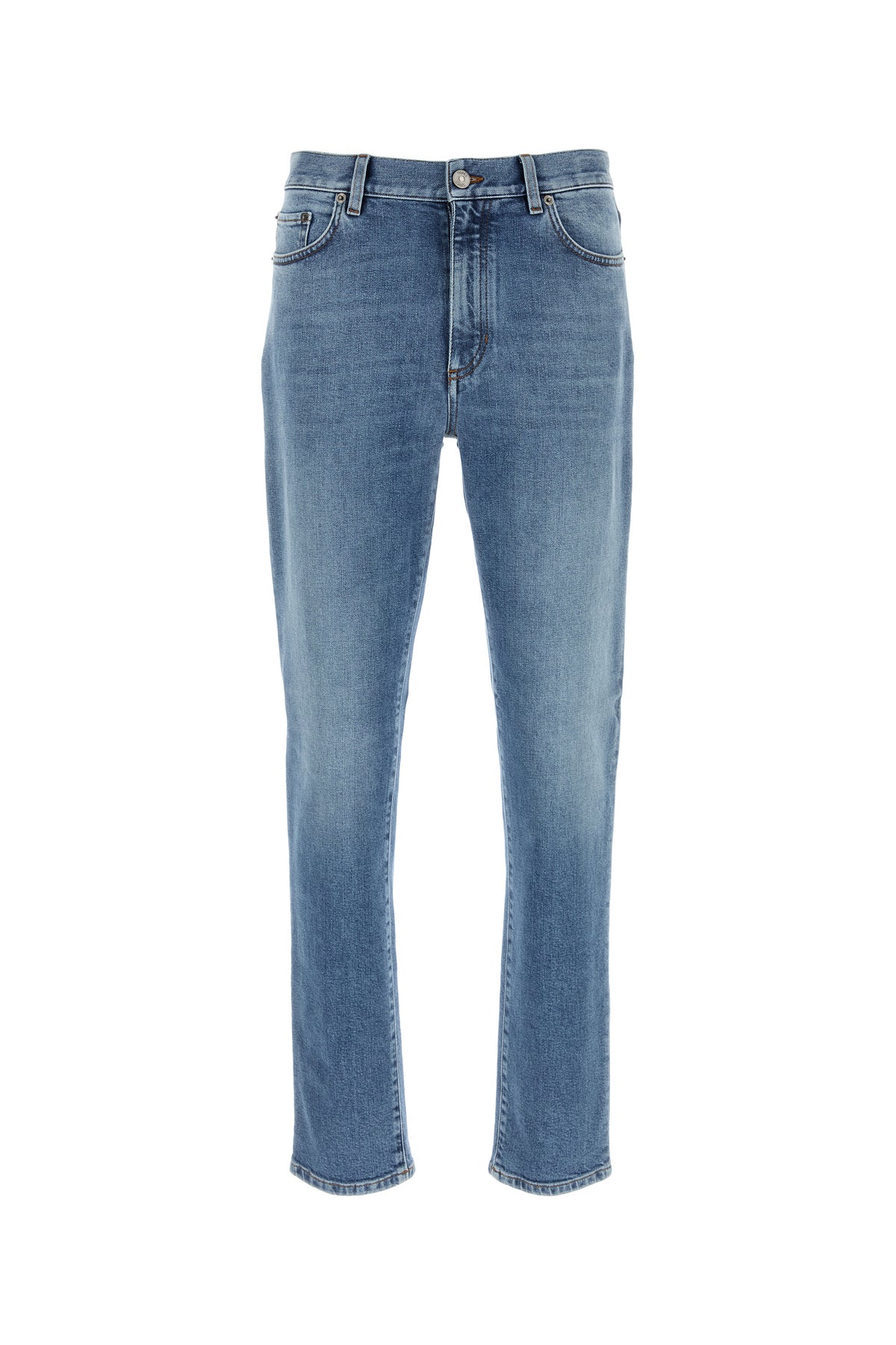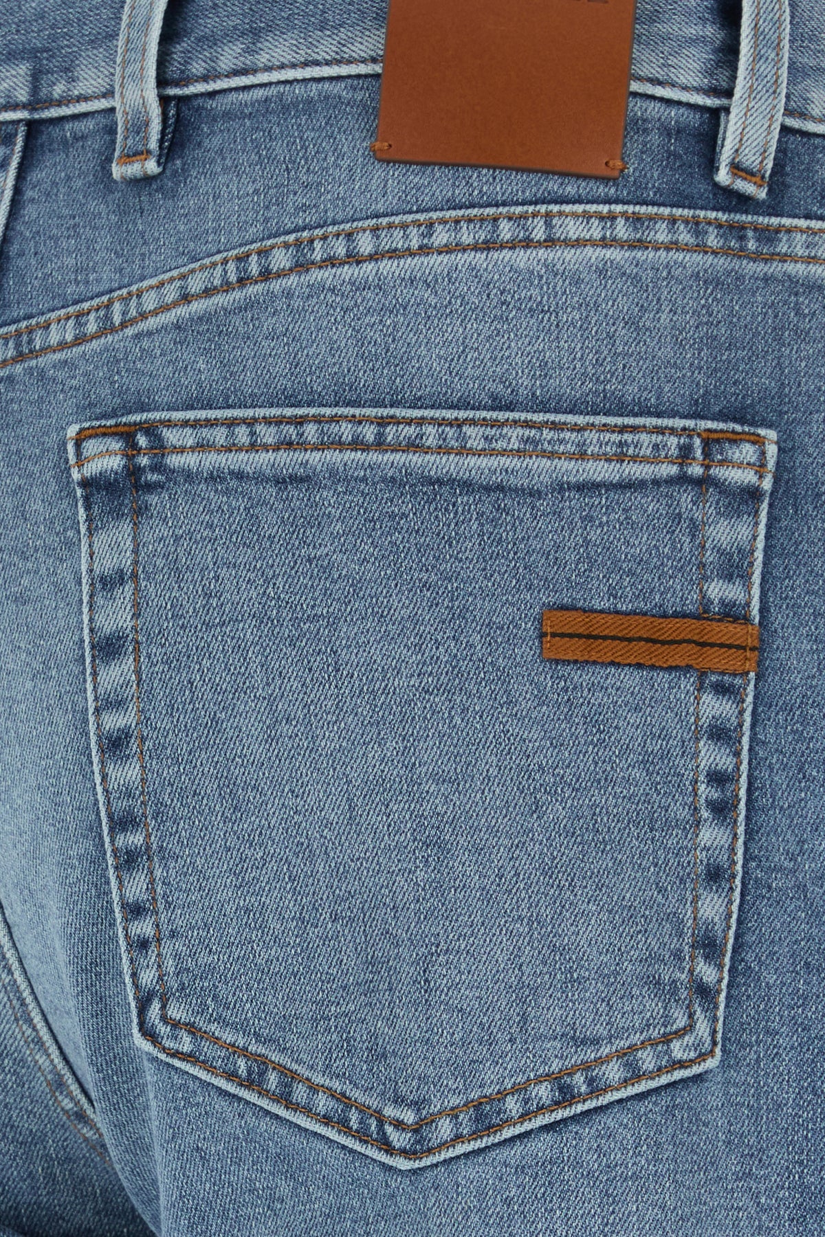 Jeans realized in stonewashed stretch cotton enriched by logoed label at the back.