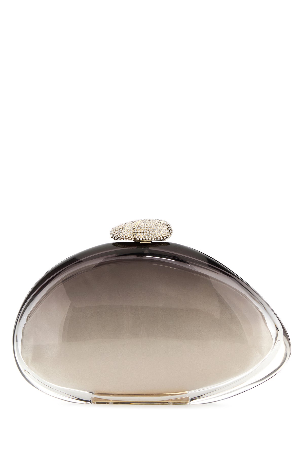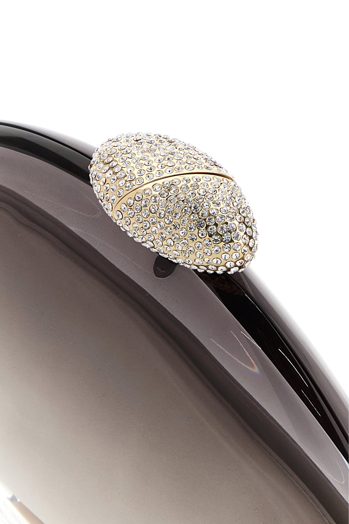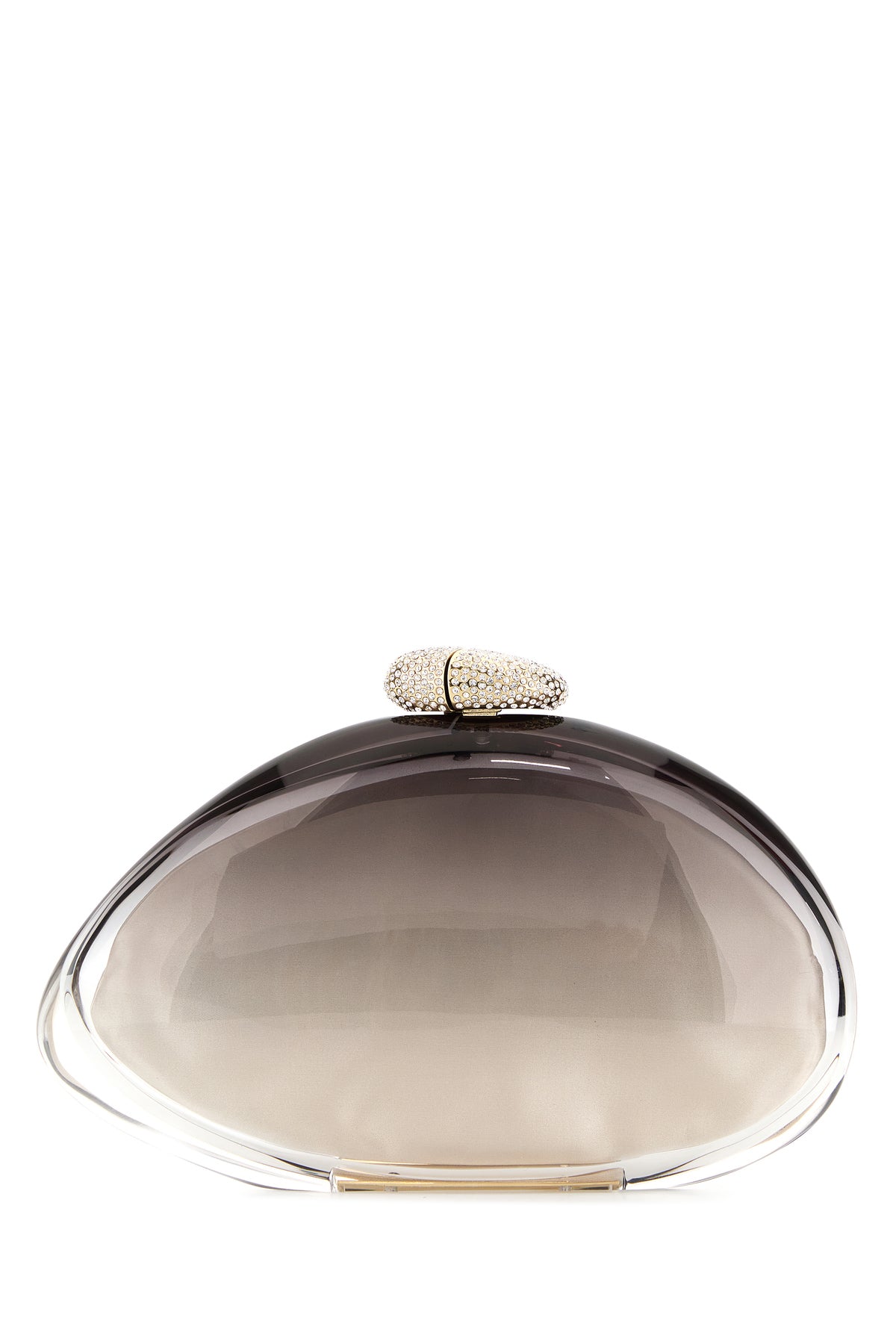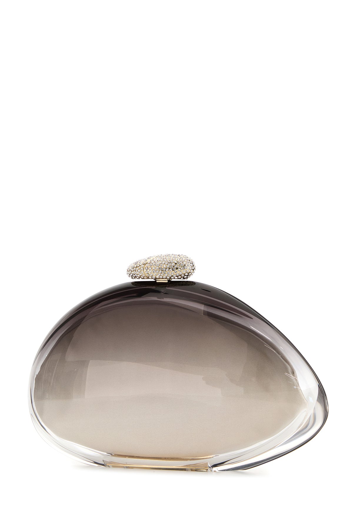 Clutch realized in 3D printed methacrylate enriched by jewel embellishment at the top.