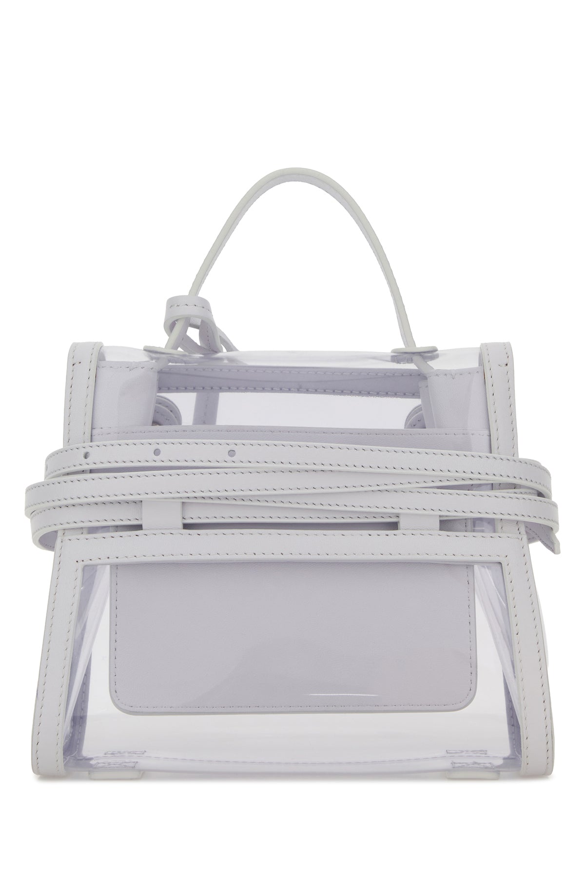 Handbag realized in PVC with nappa inserts on the trimmings.