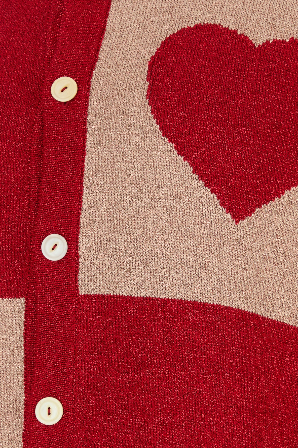 Cardigan realized in viscose blend with lurex threads characterized by peculiar embroidery at the front.