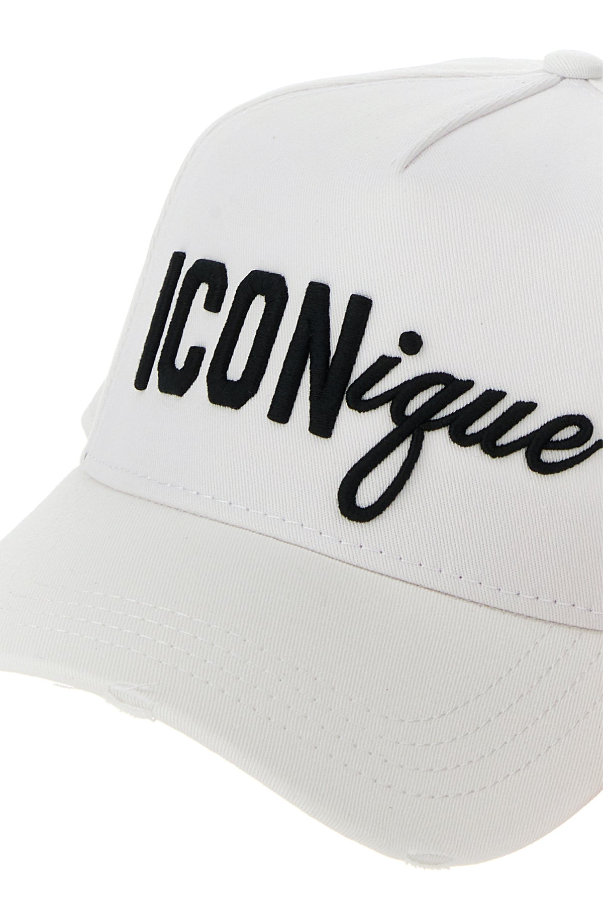 Baseball cap realized in distressed effect pure cotton characterized by peculiar embroidery at the front and embroidered logo at the back.