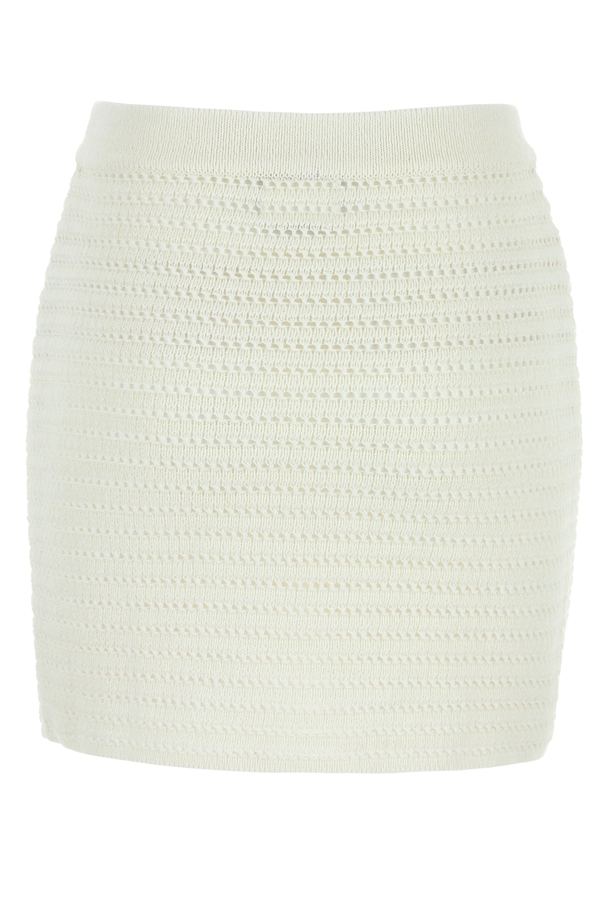 Mini skirt realized in puer linen crochet enriched by decorative buttons.