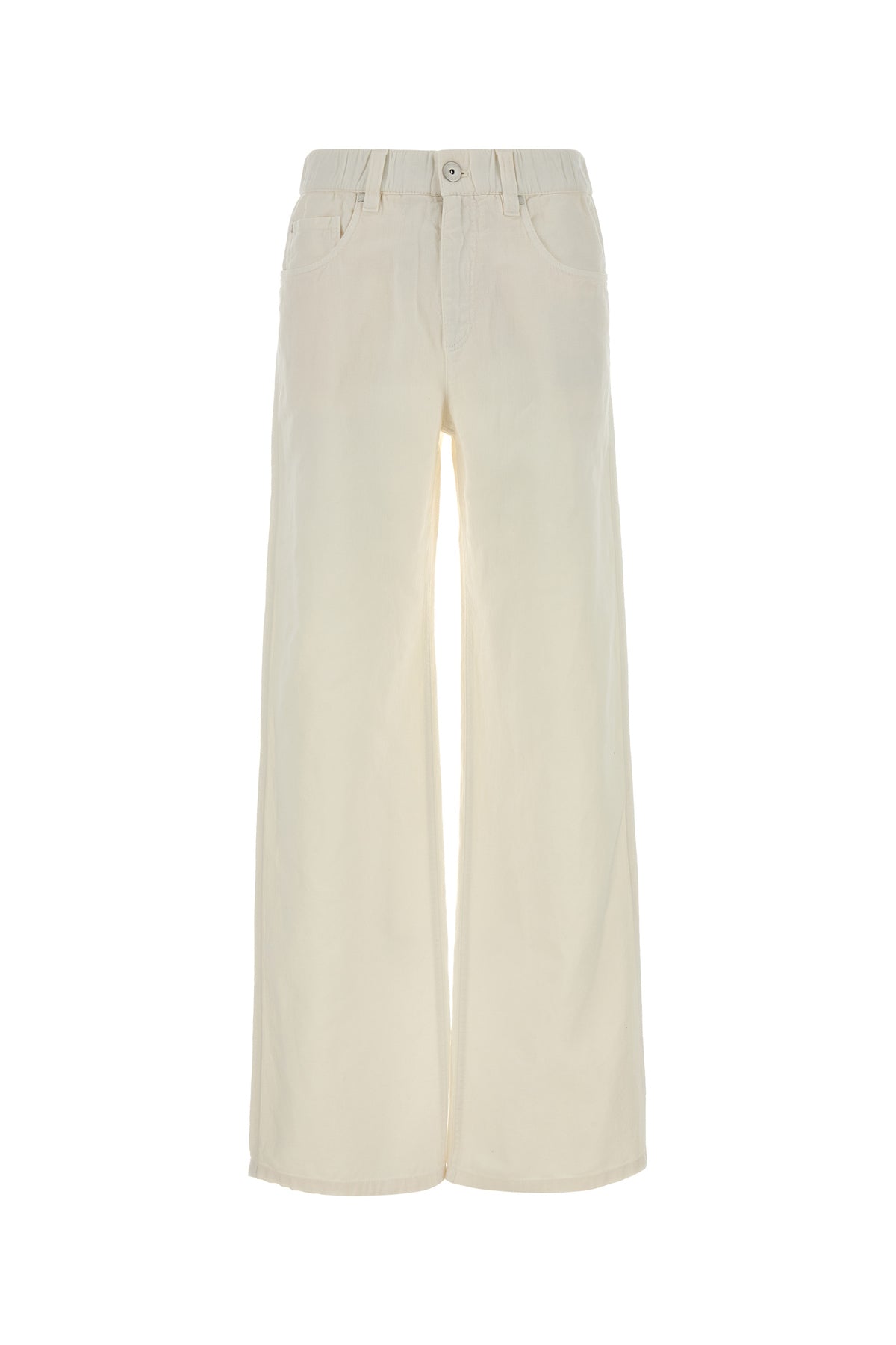 Wide-leg jeans realized in cotton and linen denim.