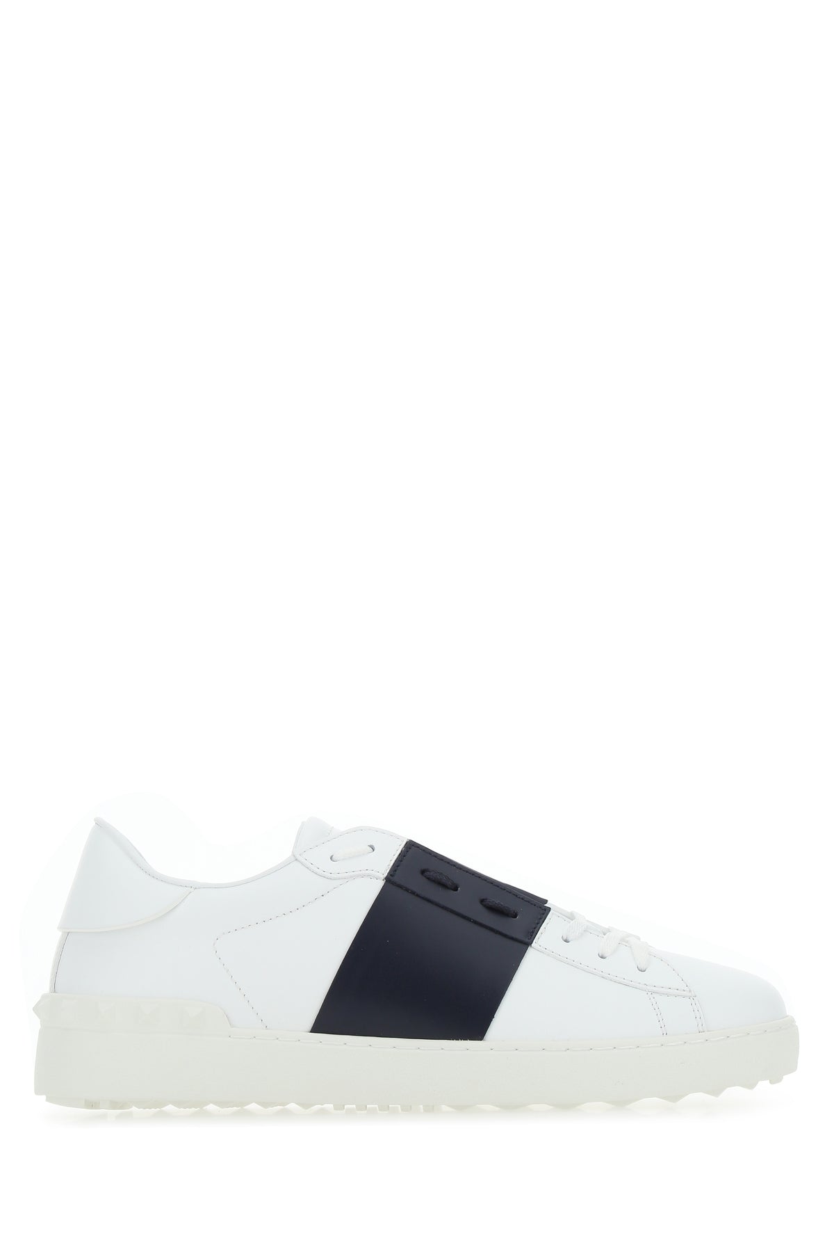 Sneakers realized in smooth calf leather characterized by contrasting band enriched by rubber studs at the back.