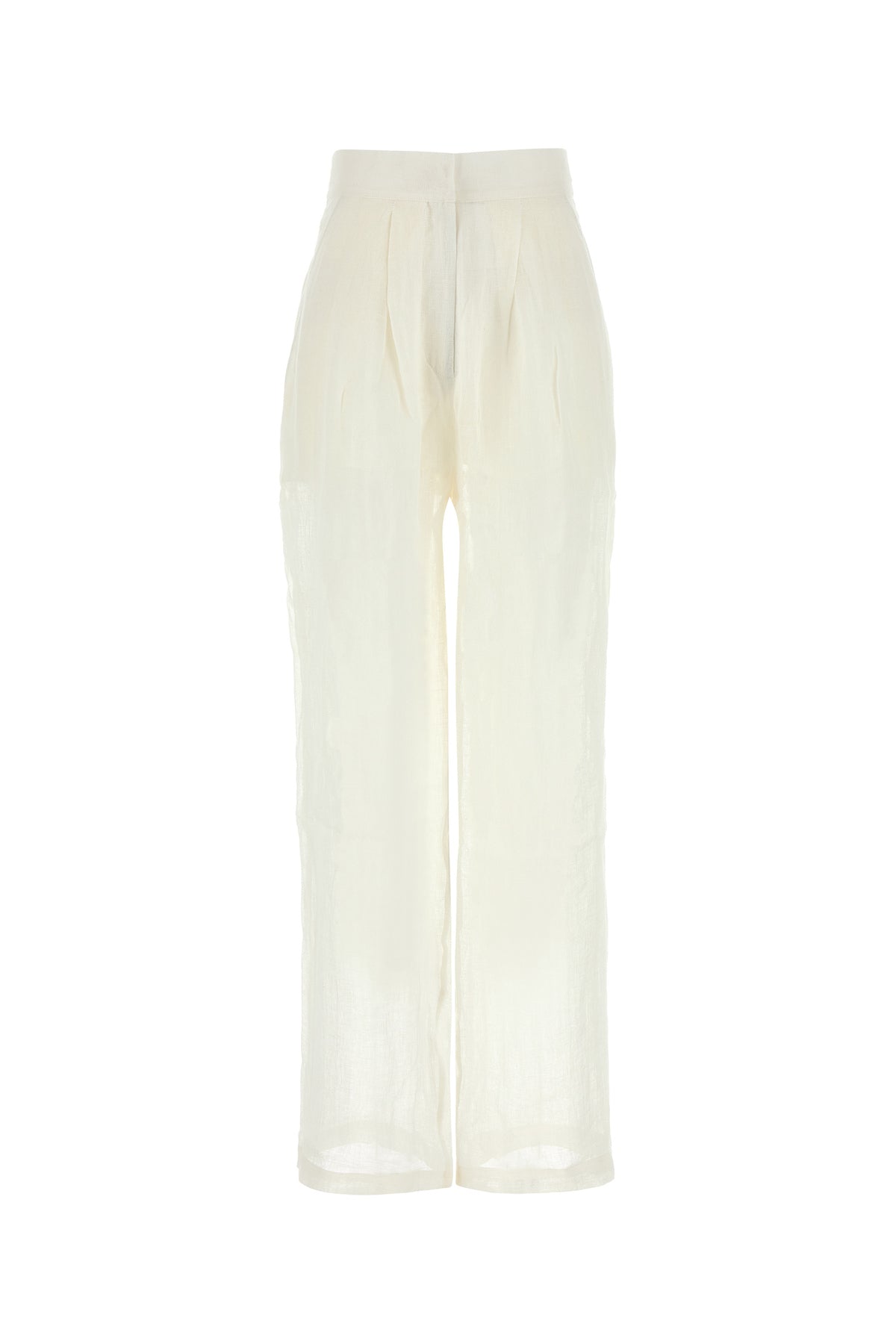 Wide-leg pant realized in pure organic linen characterized by inverted pleats.