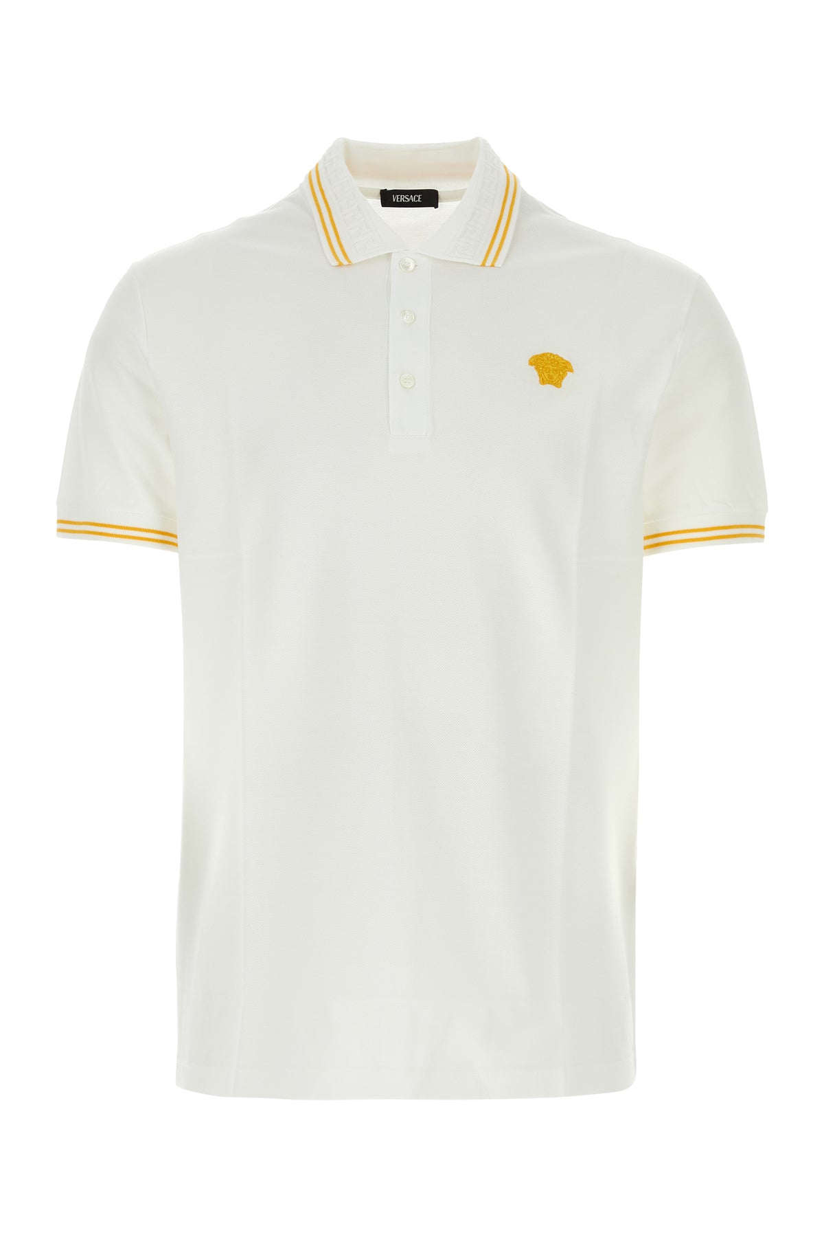 Polo shirt realized in pure cotton piquet characterized by Greca motivo embroidery on the collar and contrasting Medusa embroidery on the chest.
