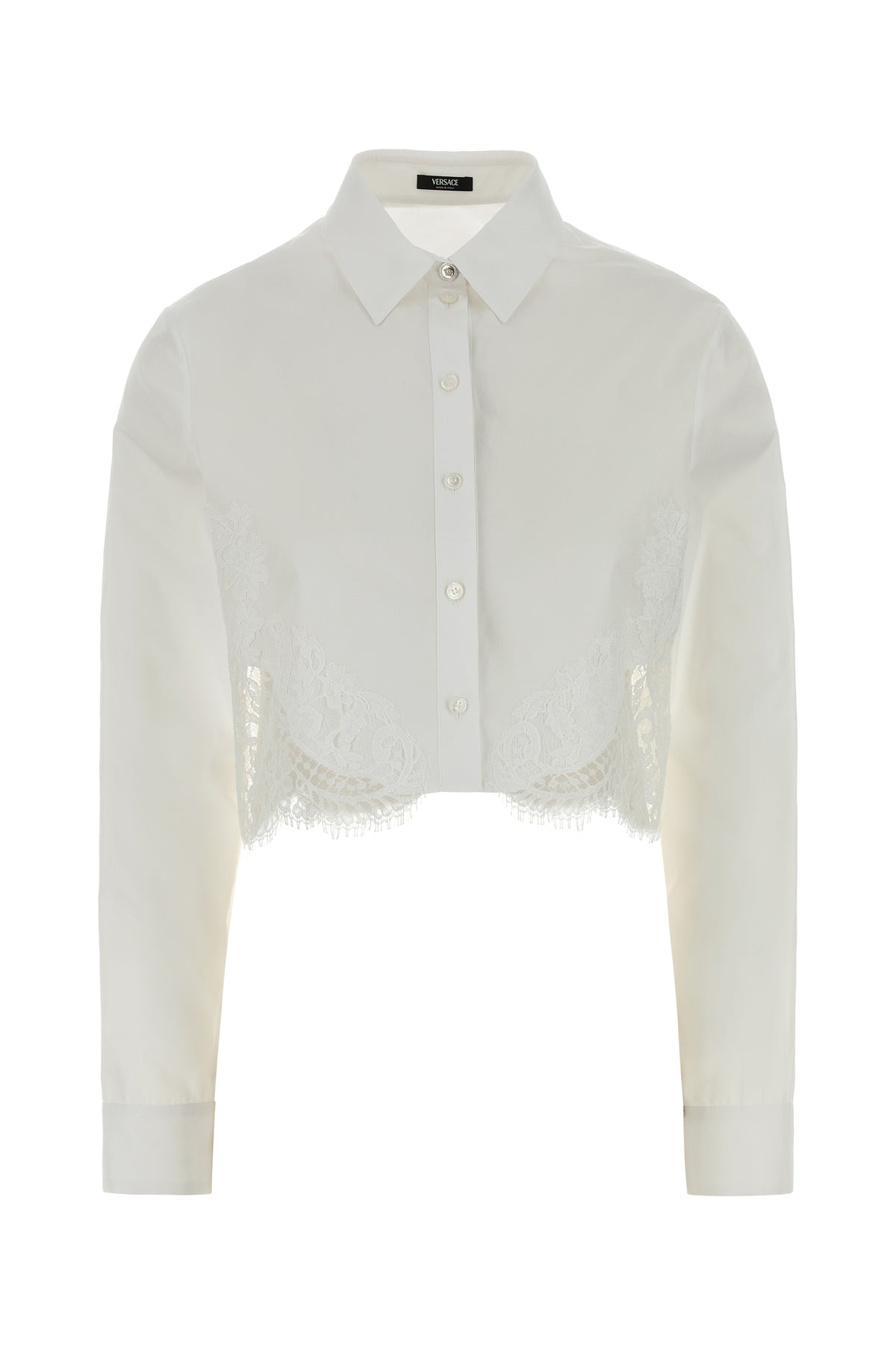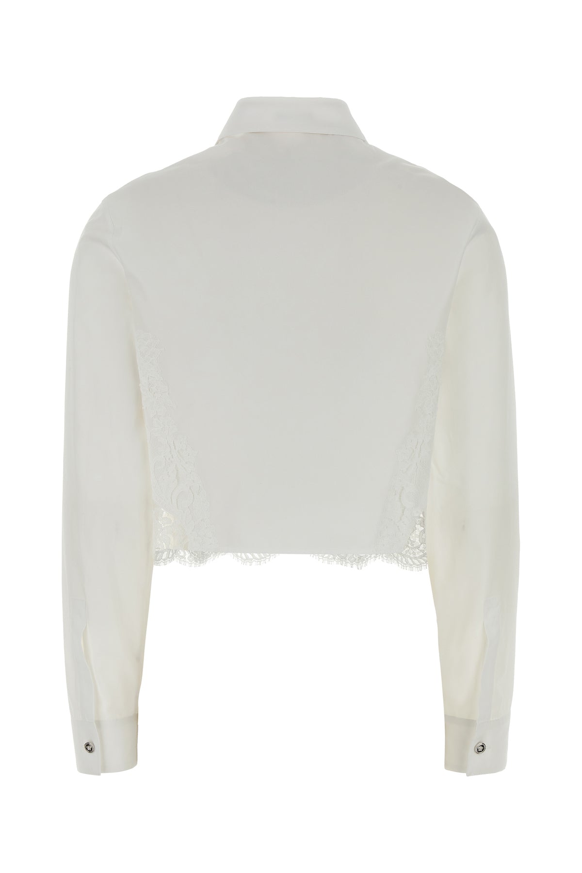Cropped-cut shirt realized in pure cotton poplin enriched by tonal lace inserts on the hemline.