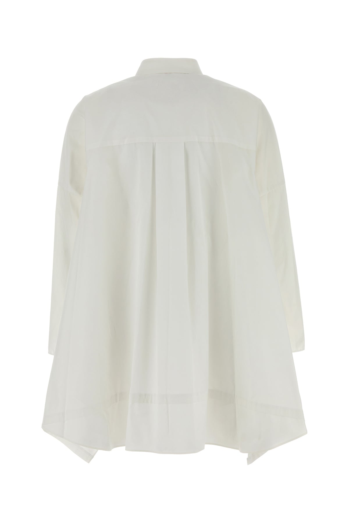 Shirt realized in popeline characterized by flared asymmetric hemline.